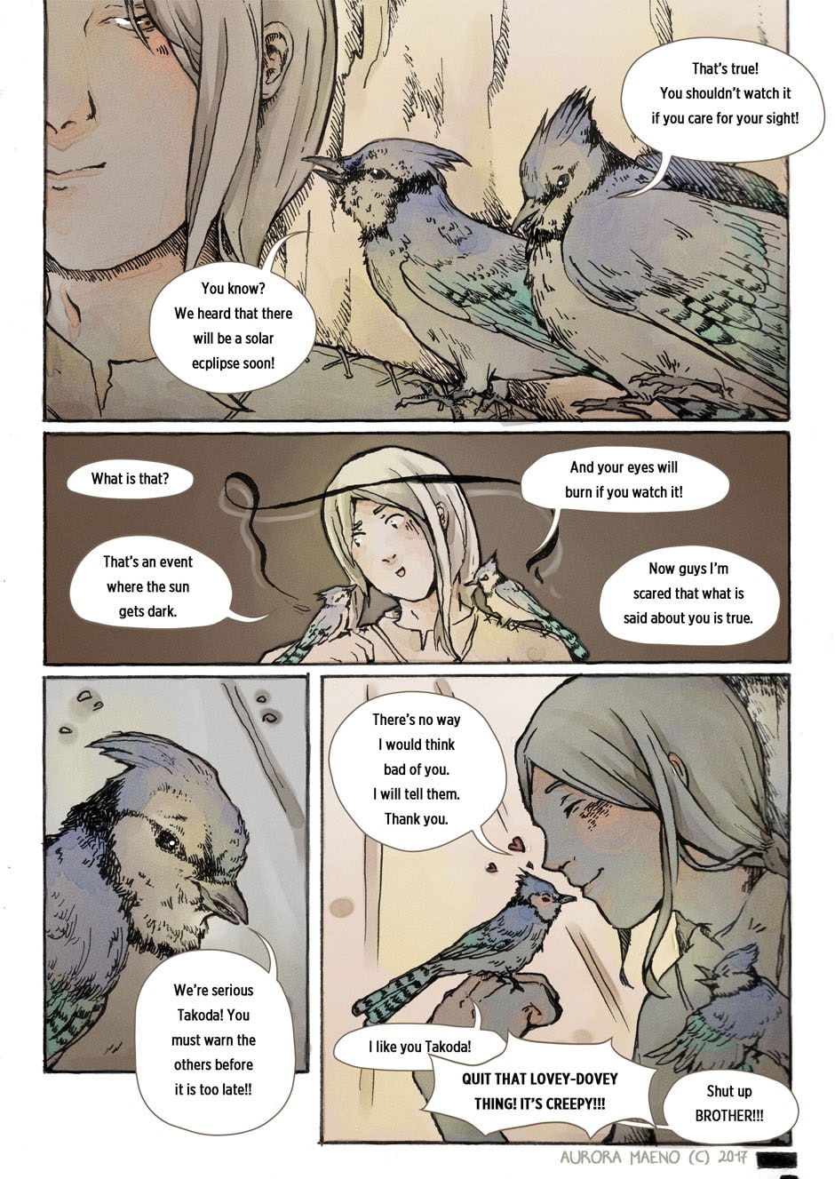 Takoda and Ioi (blue jay girl) in a sweet moment plus a troublesome brother, lolol.