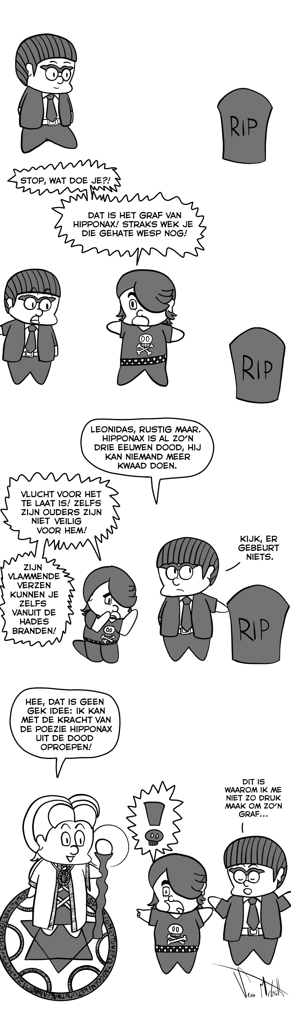 Een strip over de avonturen van de Hellenistische dichters in hun pogingen om zo obscuur mogelijke verwijzingen te maken naar uitgestorven dialecten, lokale tradities en vergeten poëzie.