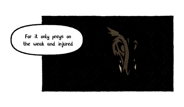 Some of you who have read between the lines would have noticed that yes, the creature is a manifestation of doubt. It spoke of warnings and pasts that she would have heard before setting out. And feeds on the fear and unease that she kept to heart.