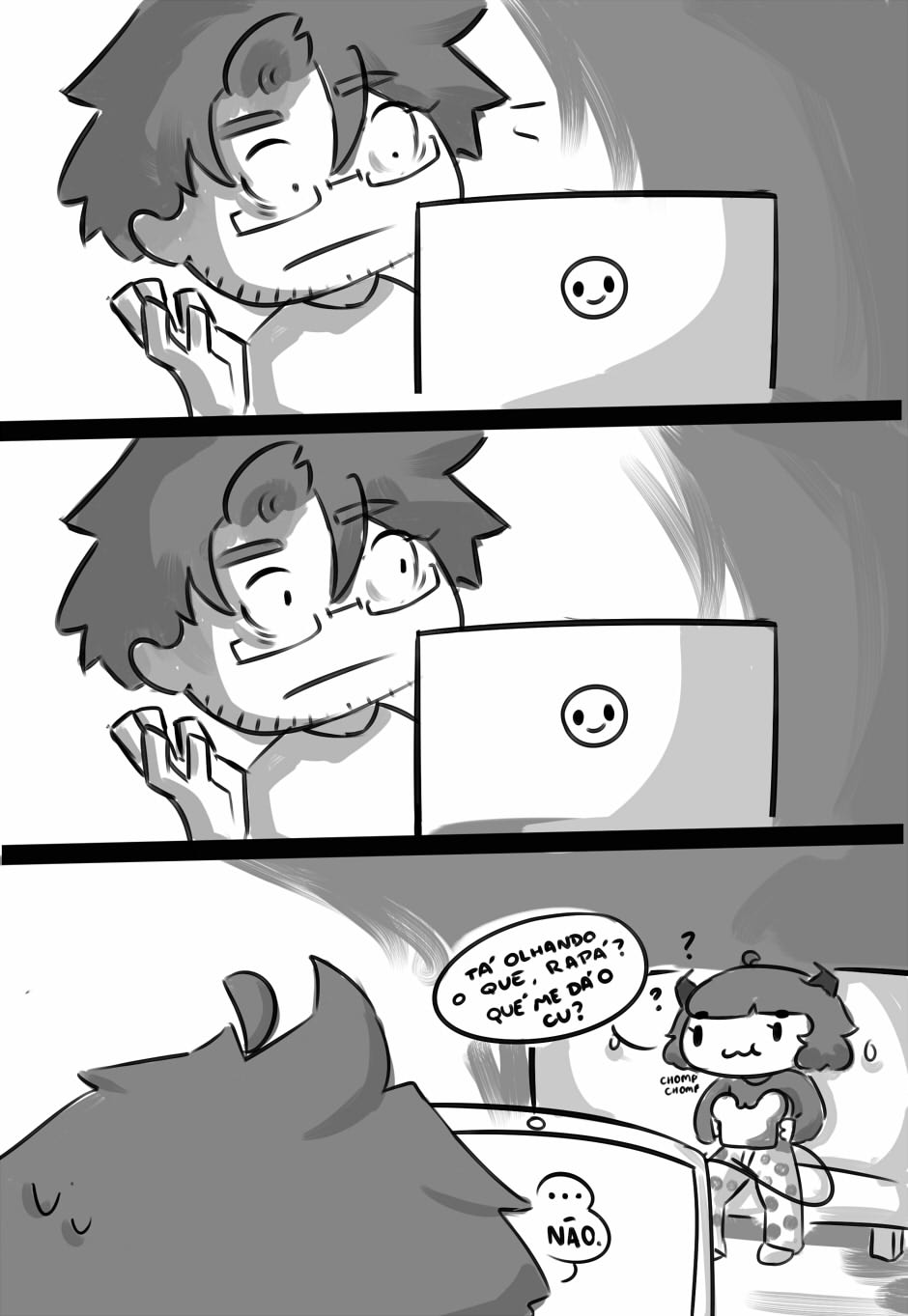 O CAP 3 AINDA TÁ EM PRODUÇÃO :'D ENTÃO A YASMON TEVE A BRILHANTE IDEIA DE FAZER UMA TIRINHA PRA NÃO DEIXAR A COISA PARADA!! APROVEITEM!! DESCULPA A DEMORA!