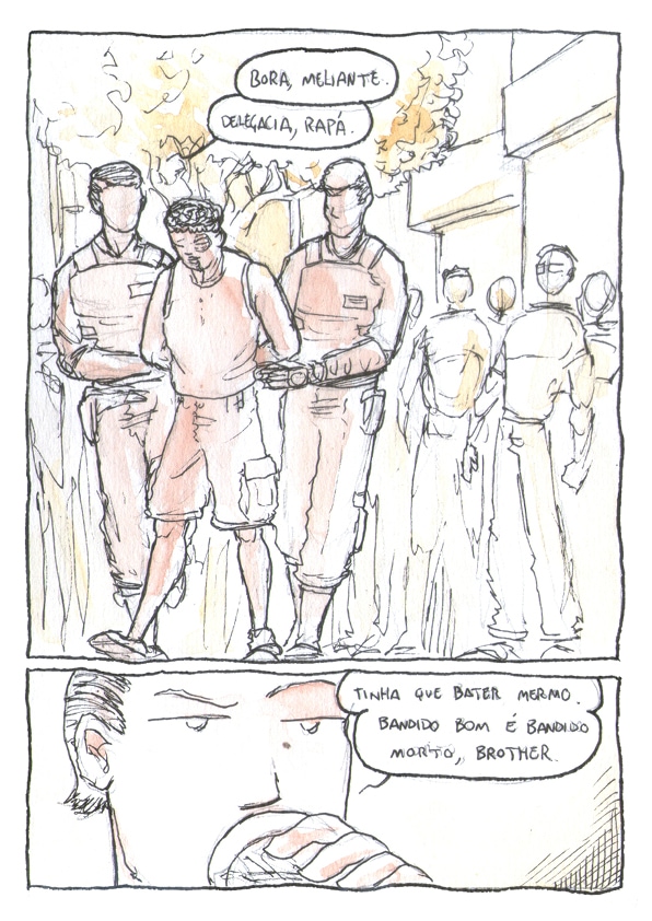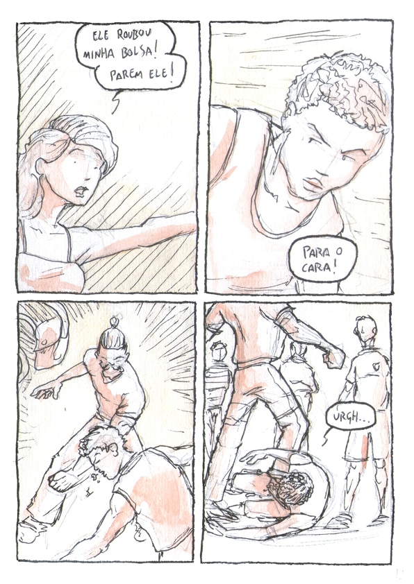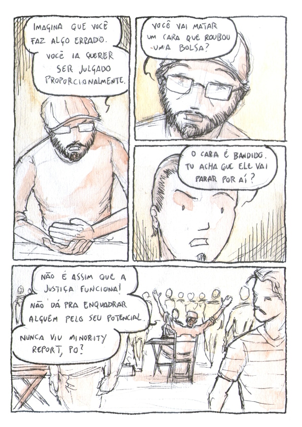 Desafio 24h - Janeiro 2018 Esse quadrinho foi produzido durante 24h sem parar com o tema sendo sorteado ao início do cronômetro. O tema da vez foi JULGAMENTO. Todas as páginas foram feitas em papel Canson 200g com lapiseira 0.7 H, Nanquim 0.2 e aquarela.