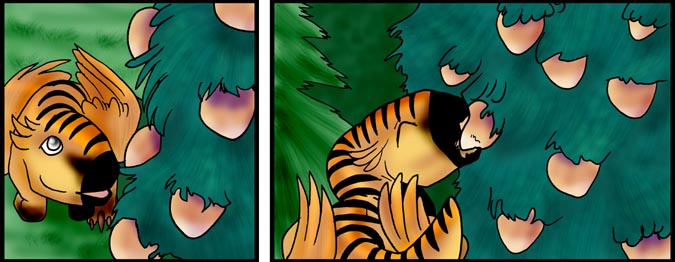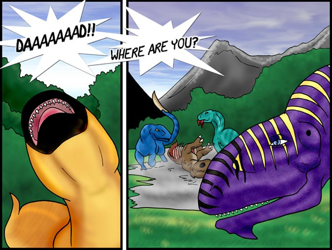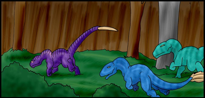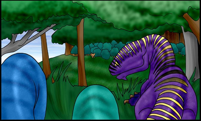 Now, Vas, is a shivae chick, a creature you can think of as a winged utahraptor if you like. They come in wingless variety too! You can also think of this as Bambi with Carnivores. Anyway, Vas has lost his mother and several of his nestmates to 'newcomers', the invading Cyantian people. Cyantians are anthro creatures who are new to their world and now, Vas, his father, Triv and brother Riva are seeking out new lands to live in, free of the invading Cyantians.