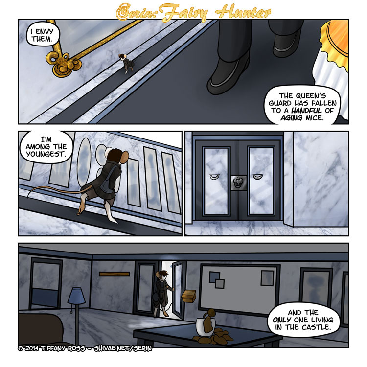Serin comes from a long line of wandering mice warriors, who have settled down in the kingdom of Remora and named it home. Time has a way of erasing the past and with there no longer being a Fairy problem for the mice to deal with, they have dwindled to only one idealistic mouse who is coming to the realization, that he's just not needed and should turn his thoughts elsewhere.