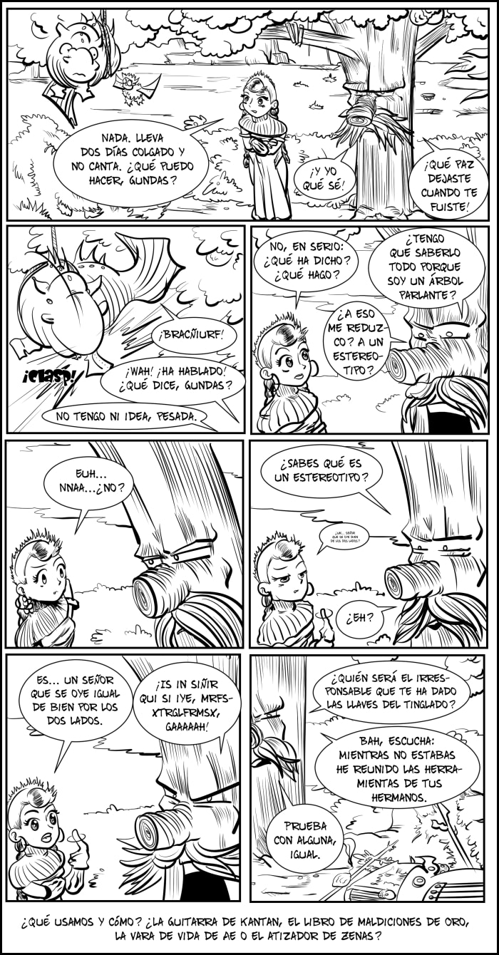 Hale, llegamos a la última tira publicada. La siguiente ya está dibujada y la subiré... no sé, el jueves, hala. A partir de ahora dependerá del ritmo al que consiga dibujar, pero me gustaría hacer una de WT y una de WT1000 a la semana. Si me estáis leyendo sabéis que eso probablemente no significa nada. ^^