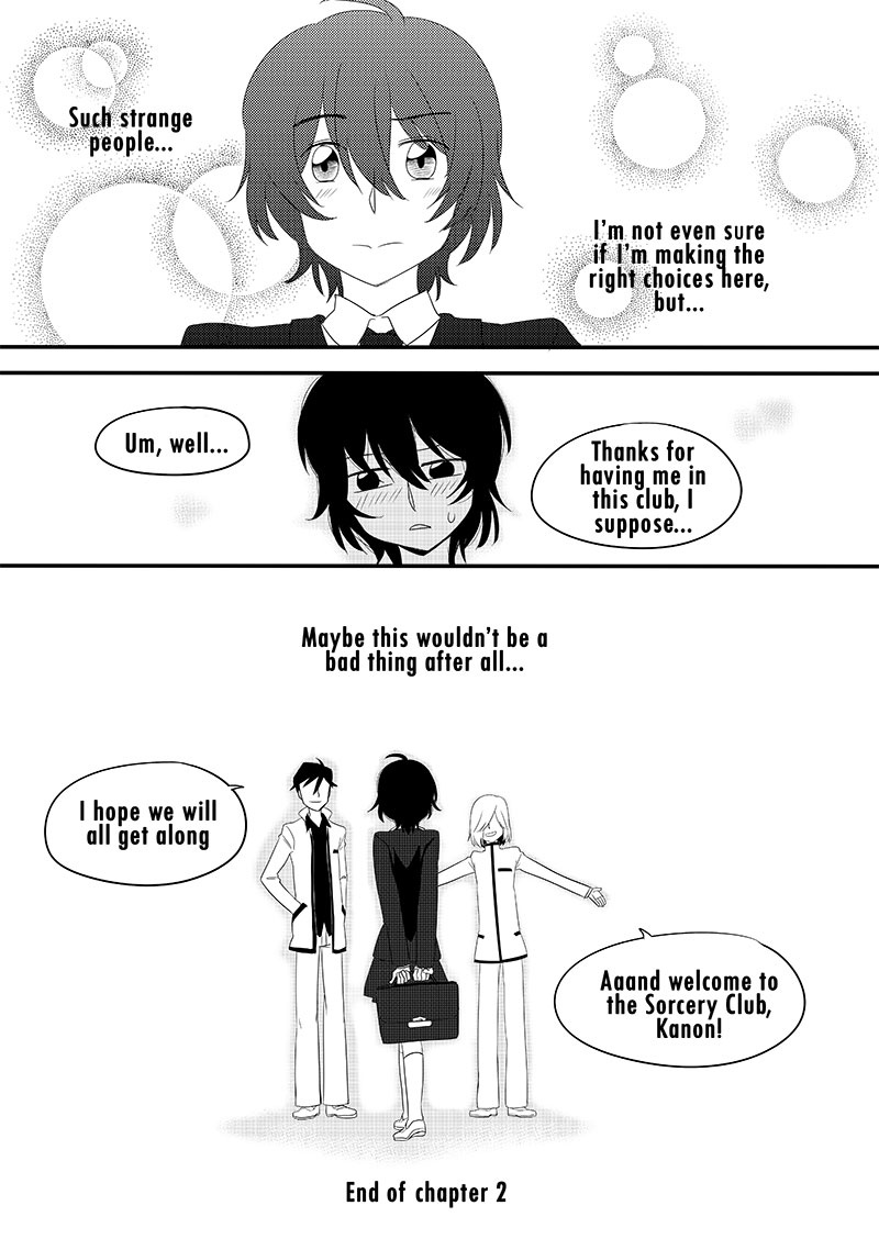 A story about high-school girl Kanon who gets involved with magical misadventures due to meeting the members of a strange school club called the "Sorcery Club". (Japanese title: Majutsu Kenkyuukai)
