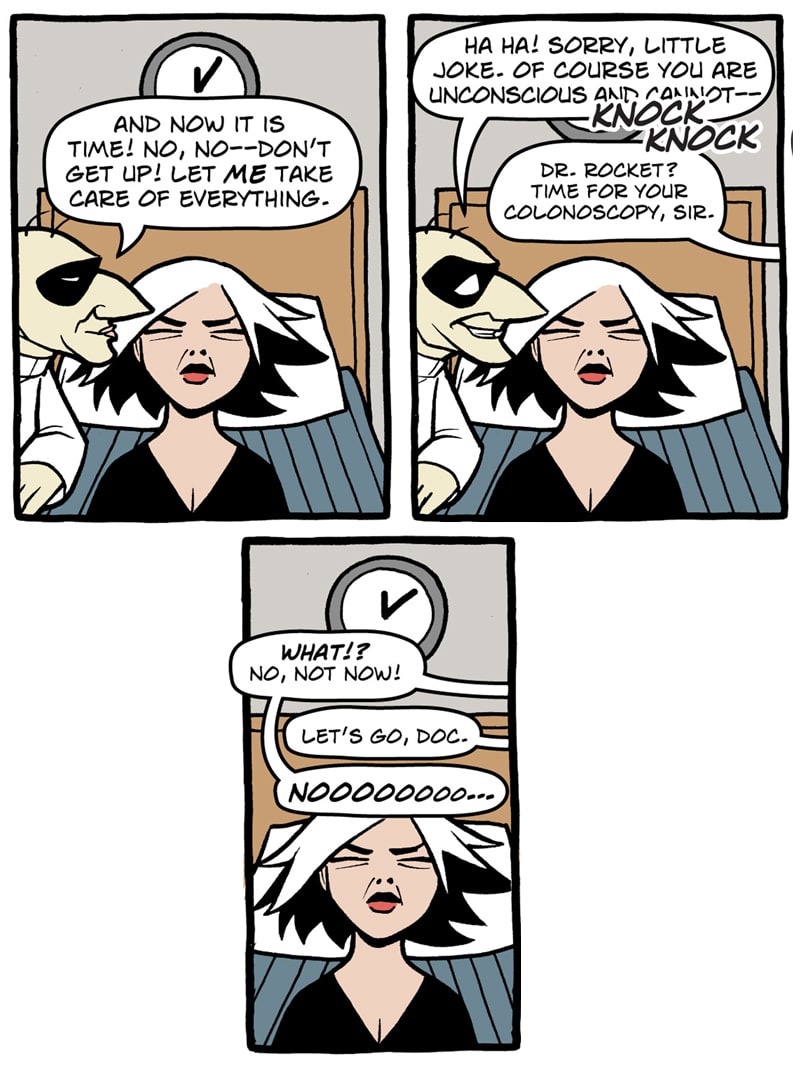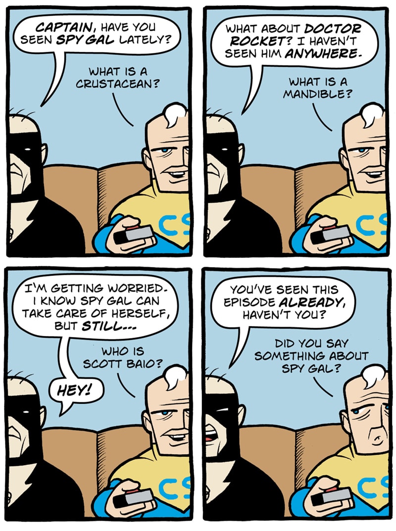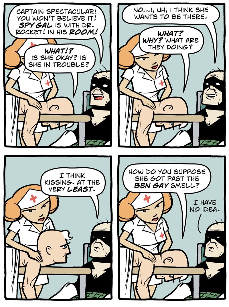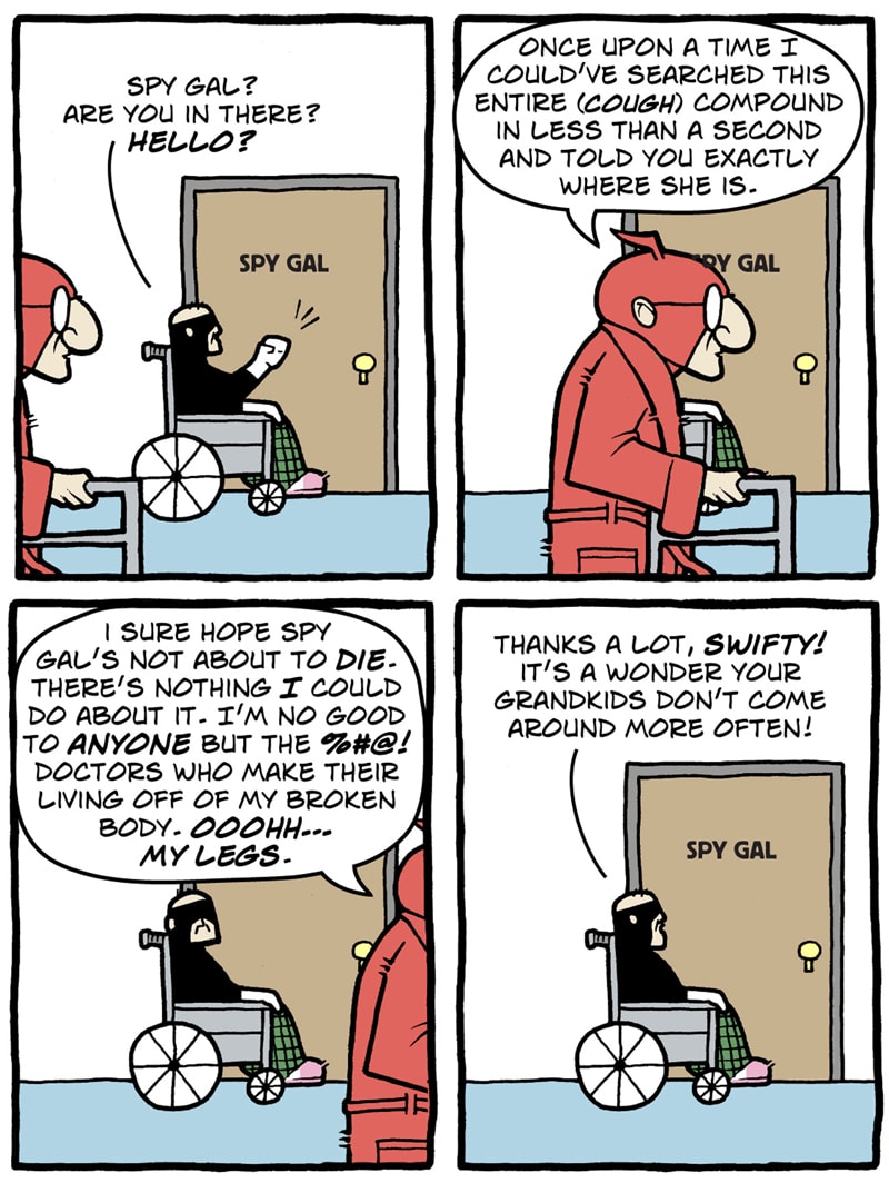 Where do old superfolk go when it's time to get out of the game? To Valhalla -- Home for the Supertired. But wait! Just when the heroic Captain Spectacular, the stealthy and sexy Spy Gal, the villainous Dr. Rocket, and the cranky speedster Swifty think they've earned their rest, new evils and terrible secrets rise to threaten everything. Created, written, and drawn by Brock Heasley.