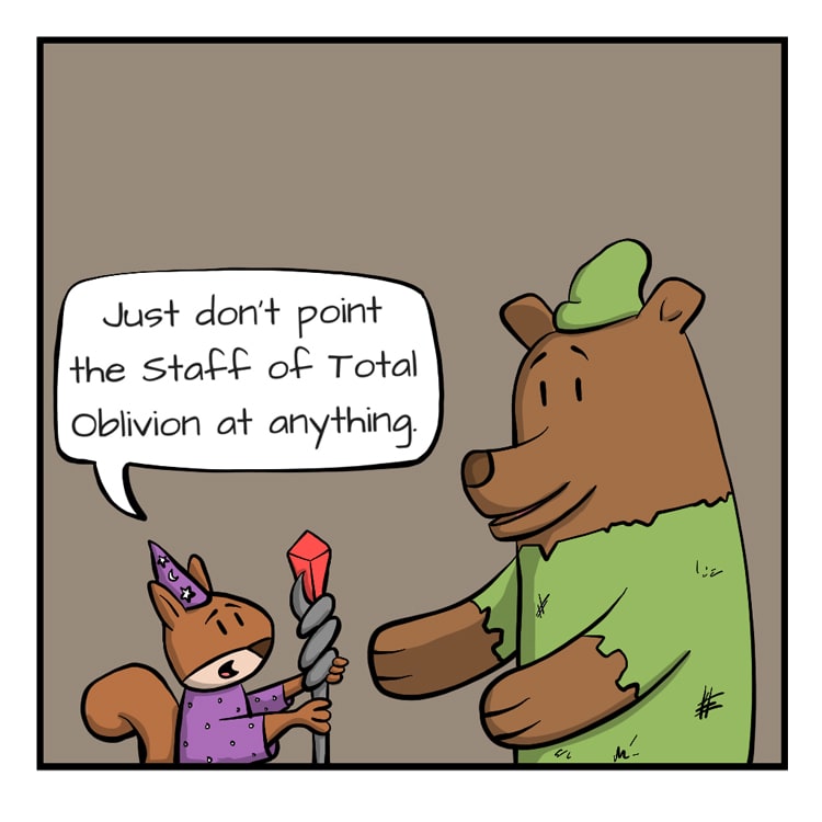 "Just don't point the Staff of Total Oblivion at anything."
