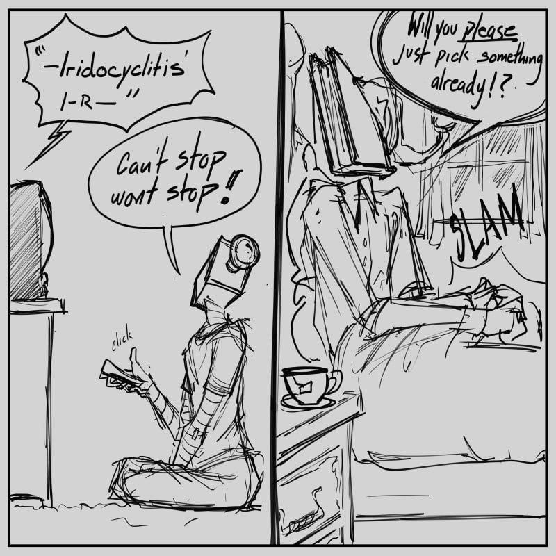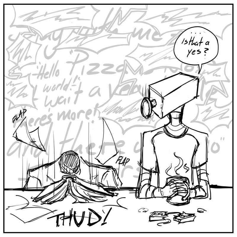 I'm concerned on how much book pages always fall out of his head. They must grow back like hair :\