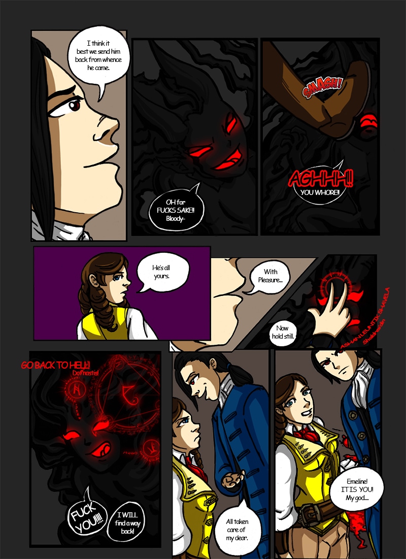 Almost like a flick of his wrist and the lesser demon is gone. And who is the other guy to Emeline?