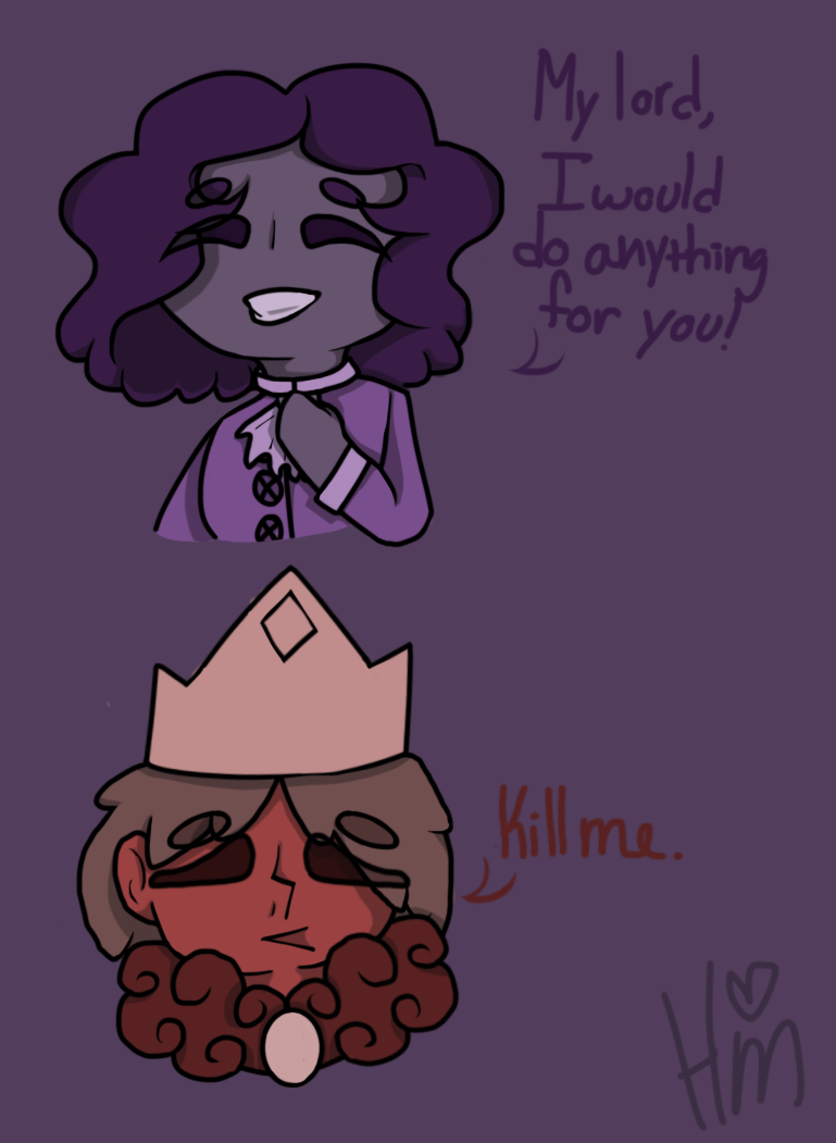 This is the king, he is very glum. He waits in the castle for his immanent death or sits in his chair for his people to eventually over throw him. But this is all in his head you'll see the true story of the king. A man who was just a little different and a little glum.