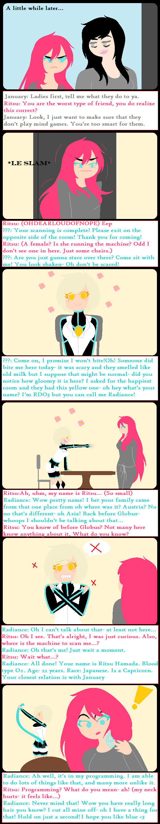 Ritsu and January are dragged into their annual scans to keep their profiles updated. A new type of programming has been hired and couldn't be more confusing for Ritsu. An outsider, one who knows more than she is willing to admit