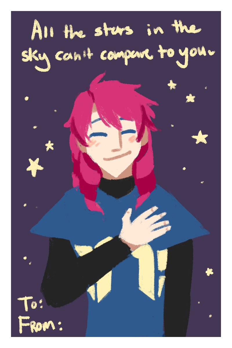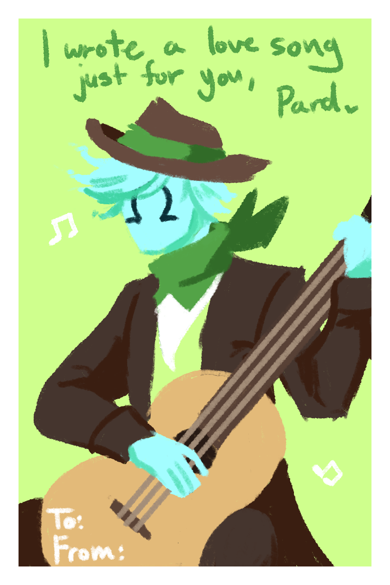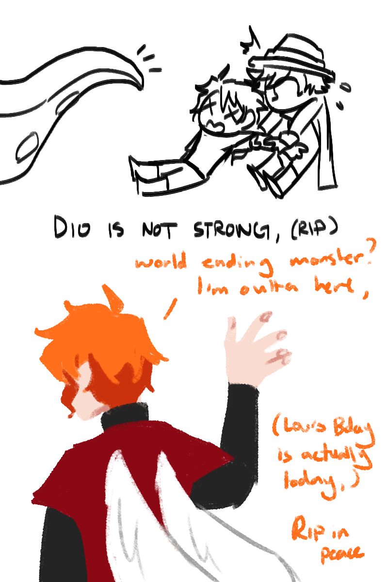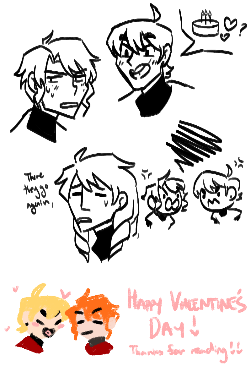Happy Valentine's day! It's not an update (I'm working on thumbnailing the next part) but I did want to post something- so have some shenanigans, cards, and a proper ref of Dio.