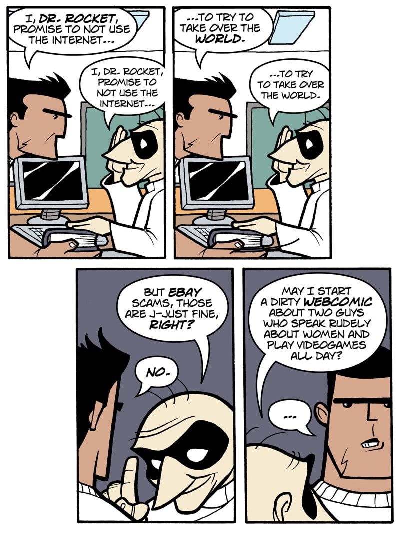 Where do old superfolk go when it's time to get out of the game? To Valhalla -- Home for the Supertired. But wait! Just when the heroic Captain Spectacular, the stealthy and sexy Spy Gal, the villainous Dr. Rocket, and the cranky speedster Swifty think they've earned their rest, new evils and terrible secrets rise to threaten everything. Created, written, and drawn by Brock Heasley.