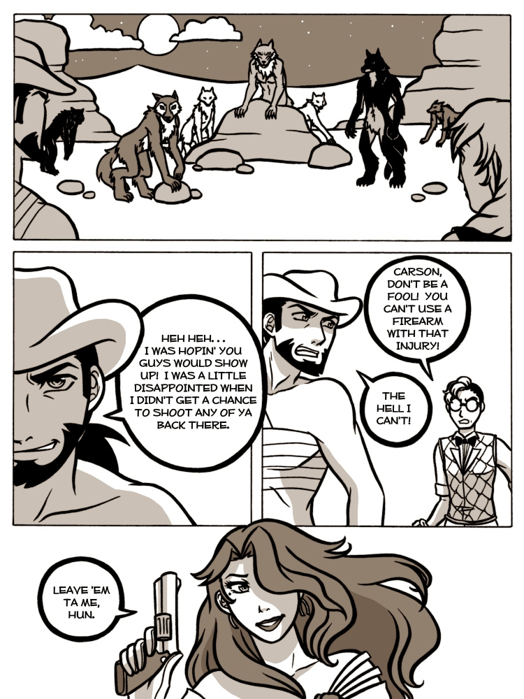 The Old West has been overrun by werewolves. Every night the human population dwindles as more die or fall under the curse. "The Nightriders", a group of bounty hunters, have joined together to deal with the threat. With the help of a girl and her mysterious necklace, can they hope to overthrow the werewolves and bring peace to the night once again?