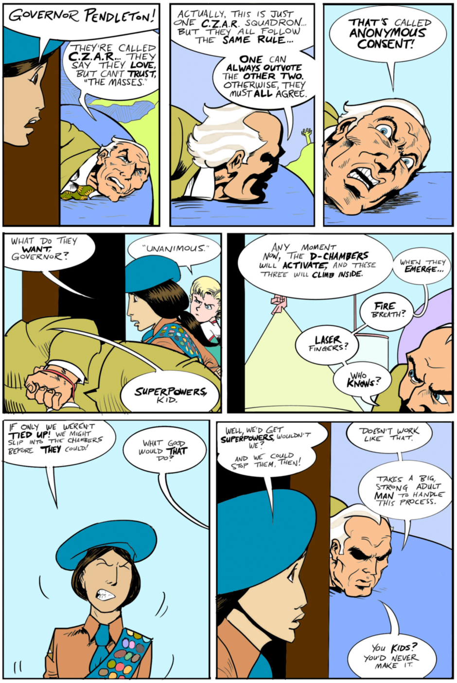 Issue #1, page 13: "The Governor Explains it All"