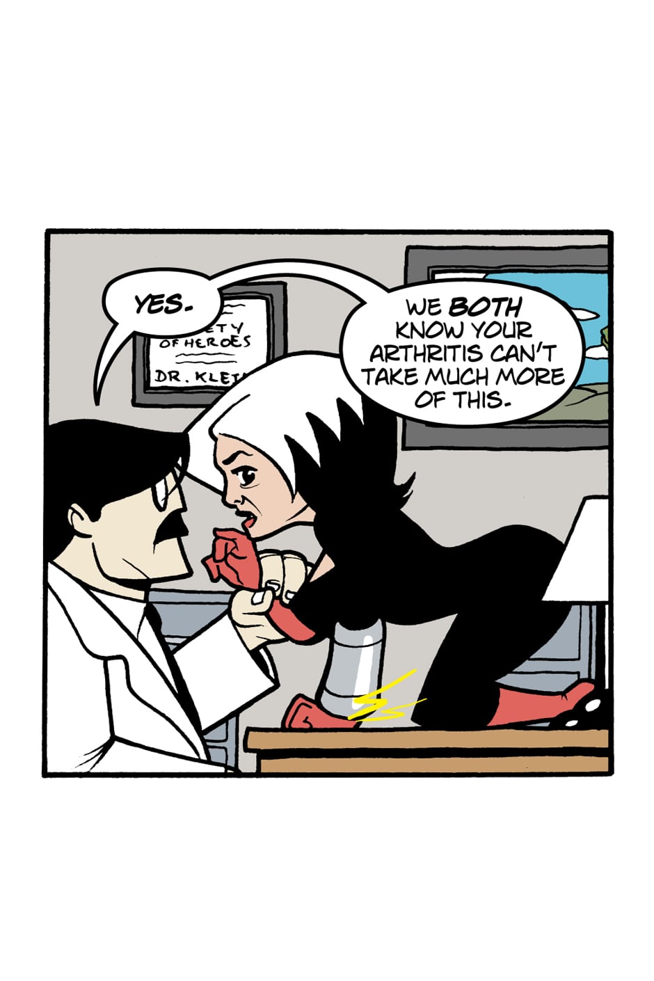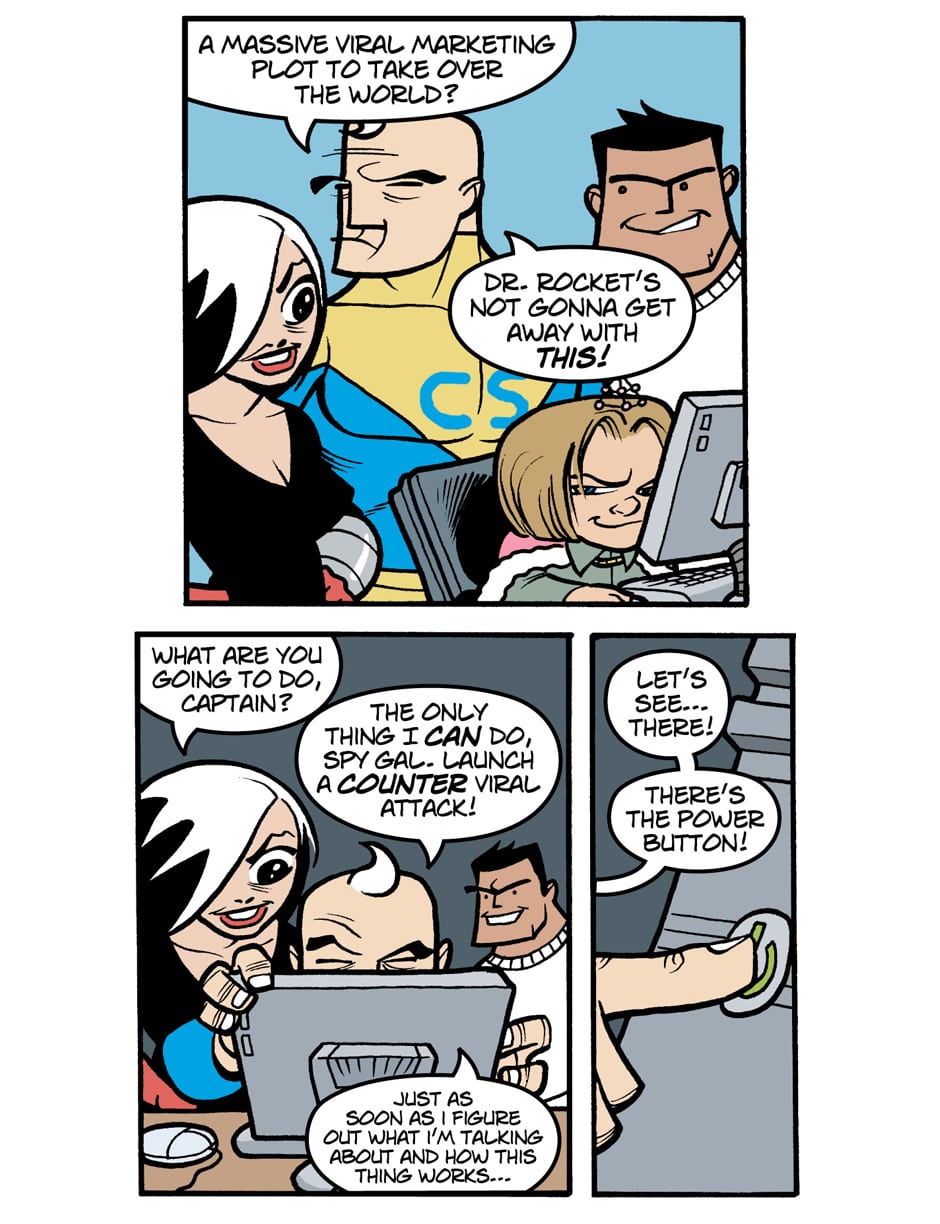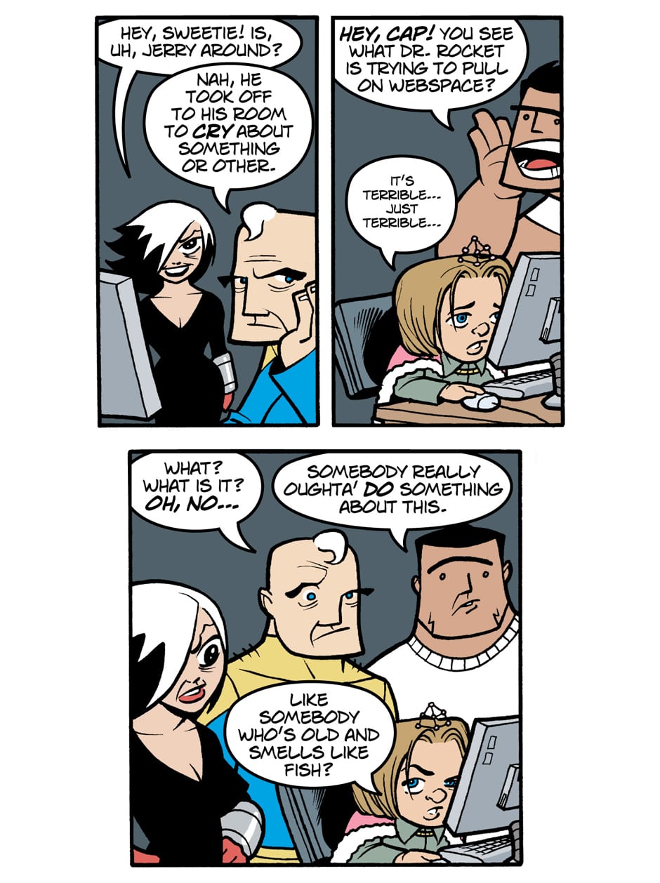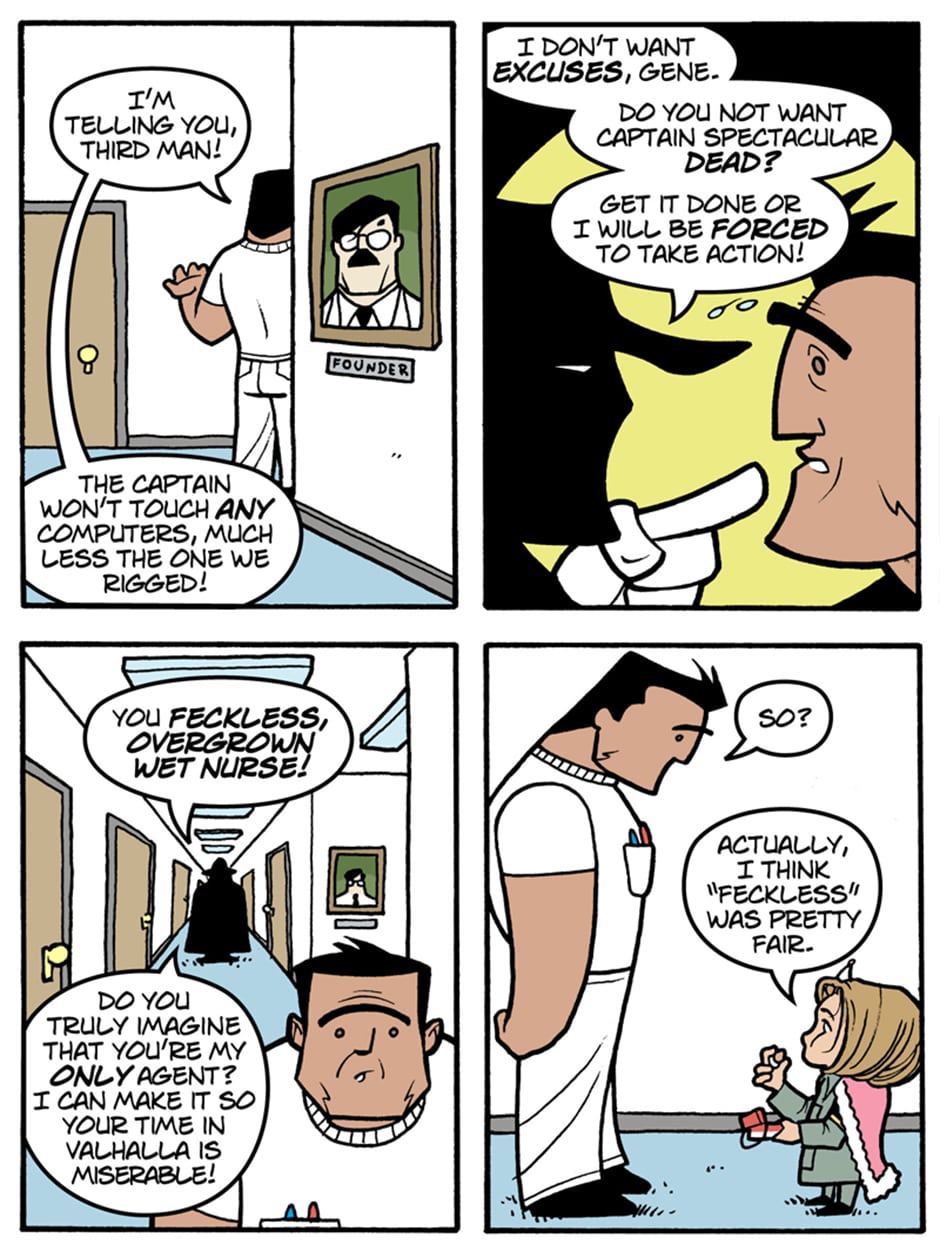 Where do old superfolk go when it's time to get out of the game? To Valhalla -- Home for the Supertired. But wait! Just when the heroic Captain Spectacular, the stealthy and sexy Spy Gal, the villainous Dr. Rocket, and the cranky speedster Swifty think they've earned their rest, new evils and terrible secrets rise to threaten everything. Created, written, and drawn by Brock Heasley.