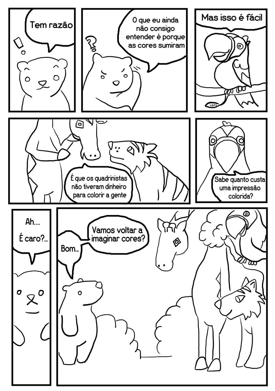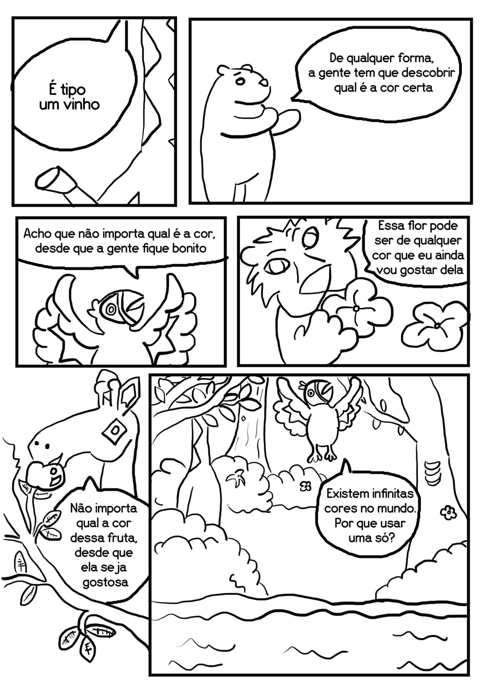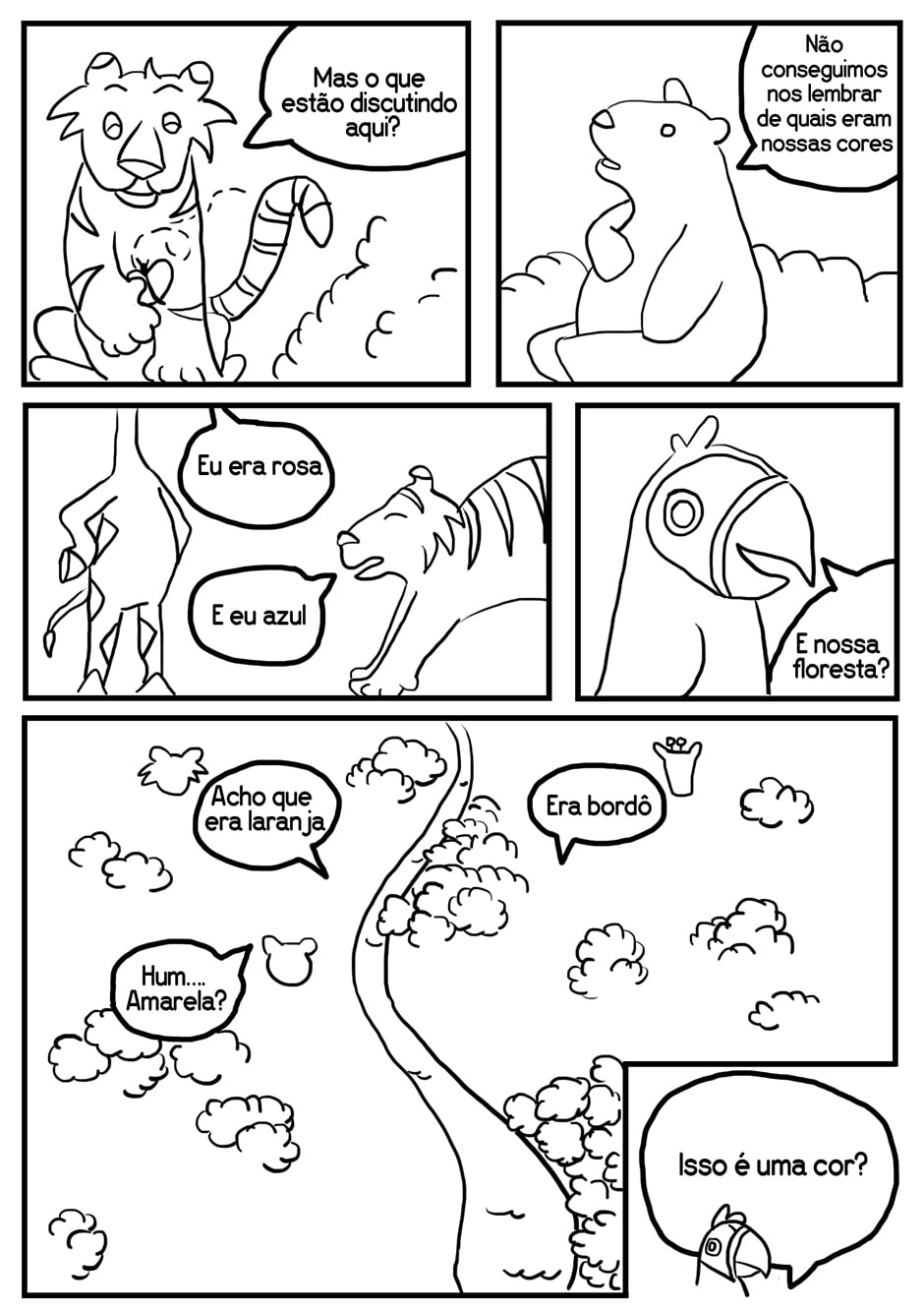 Os animais de uma floresta não conseguem se lembrar de quais eram suas cores. Qual é a cor certa? Escrito por Duane Henrique Ilustrado por Raquel Torres