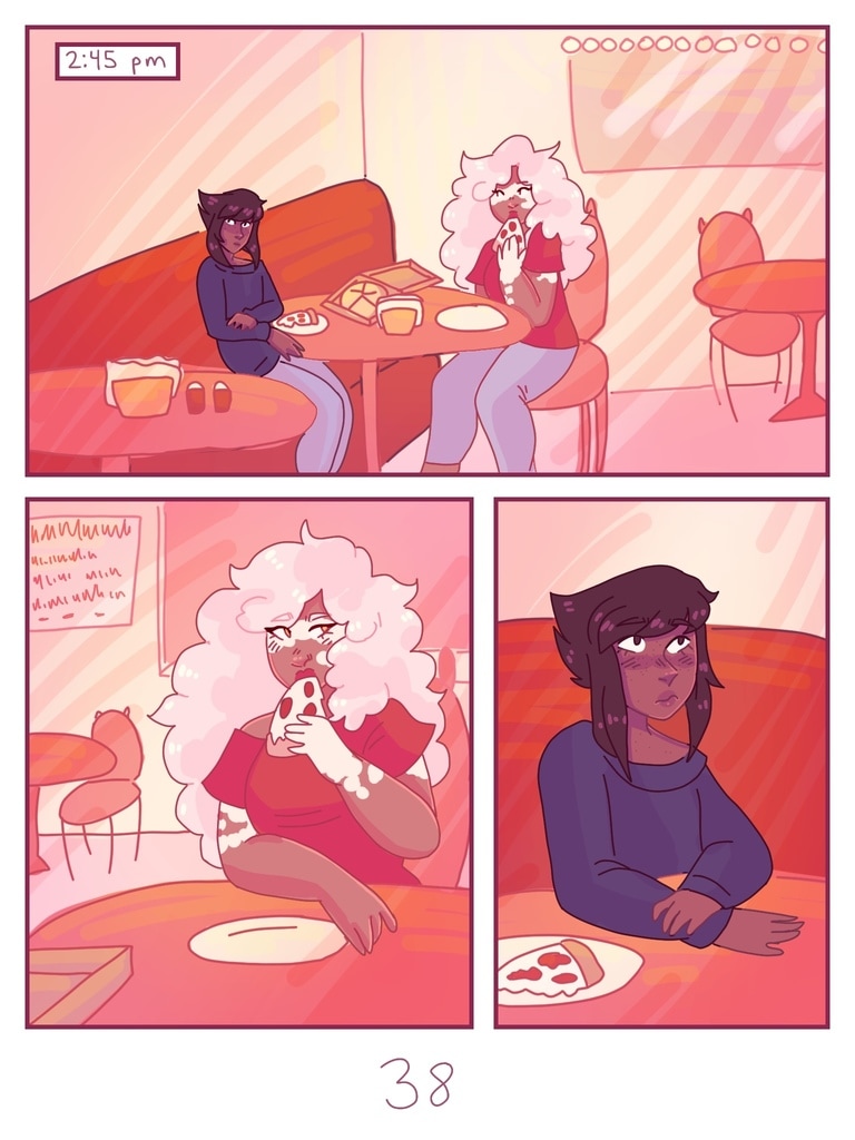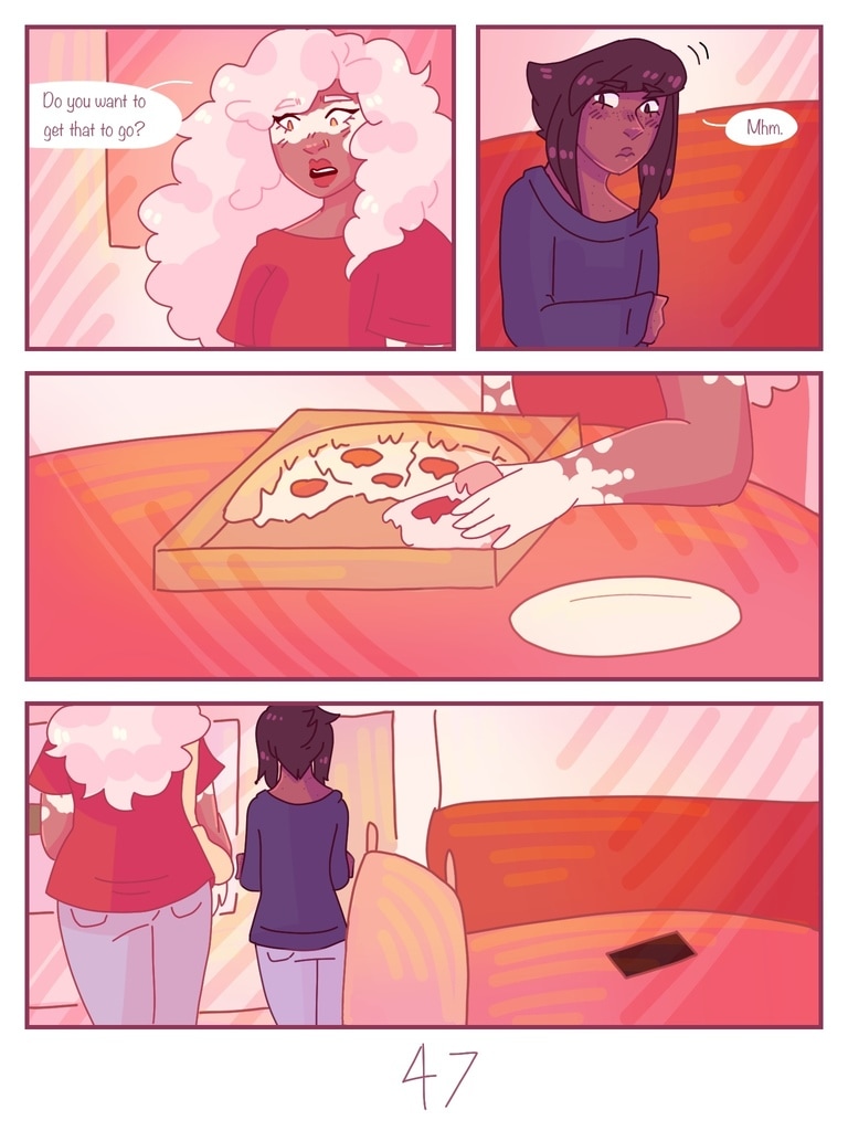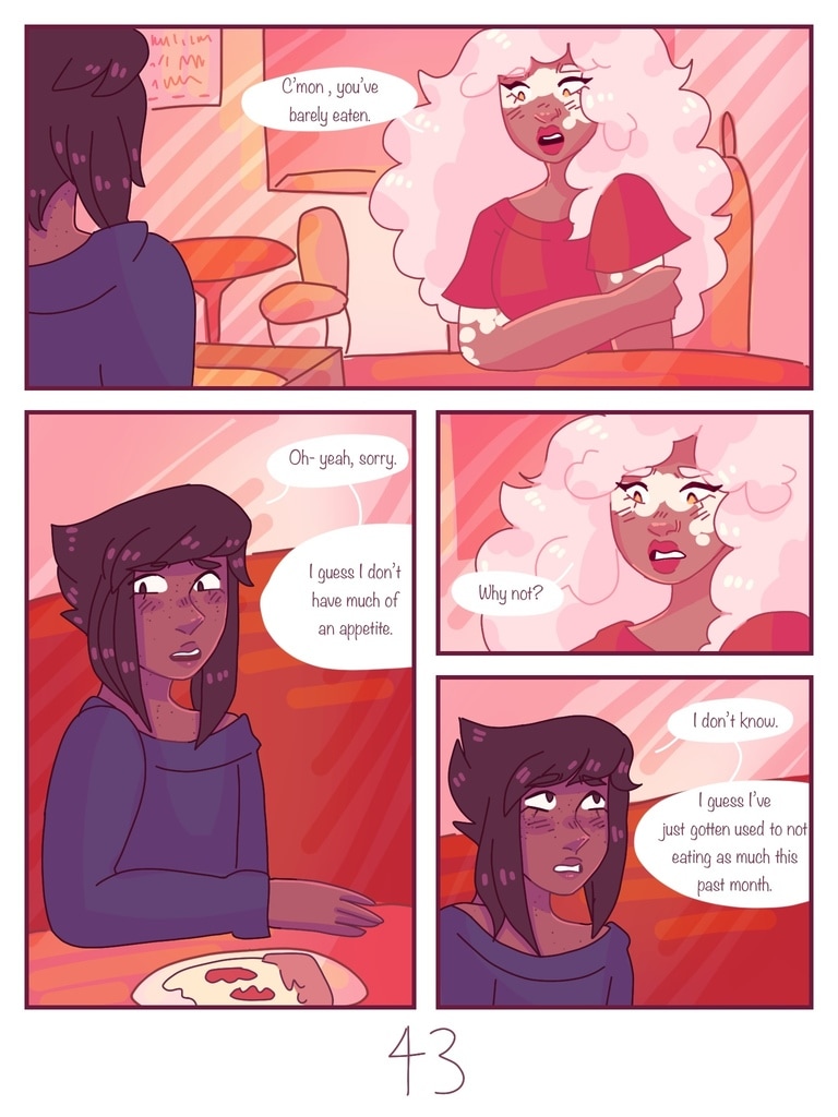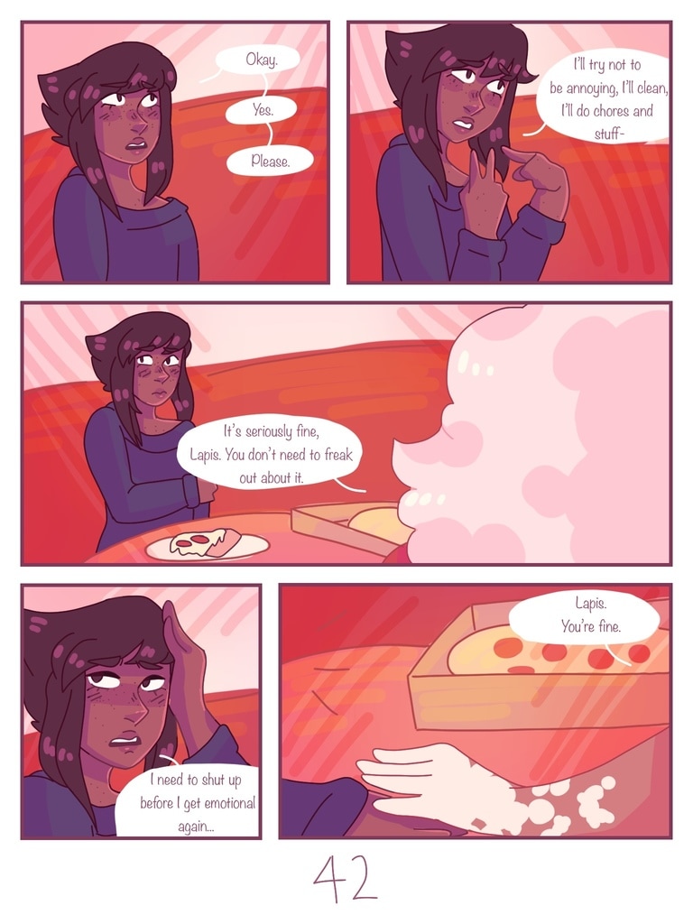 after Lapis is kicked out of her house for being trans, Jasper offers to be roommates with her, giving her a chance to start fresh and make new friends. (yes, this is a steven universe human au fancomic, but if you don't watch su you can still read it and understand the plot.)