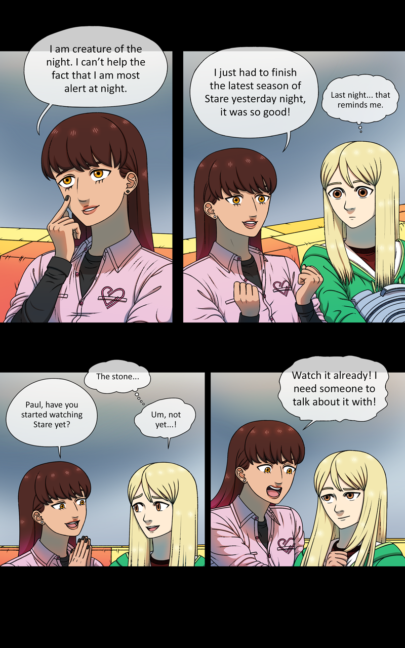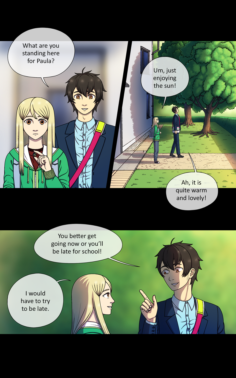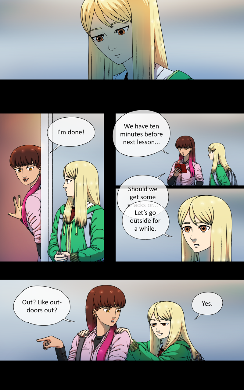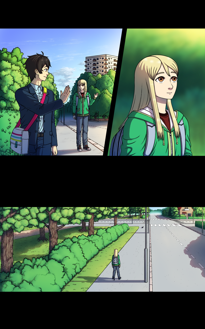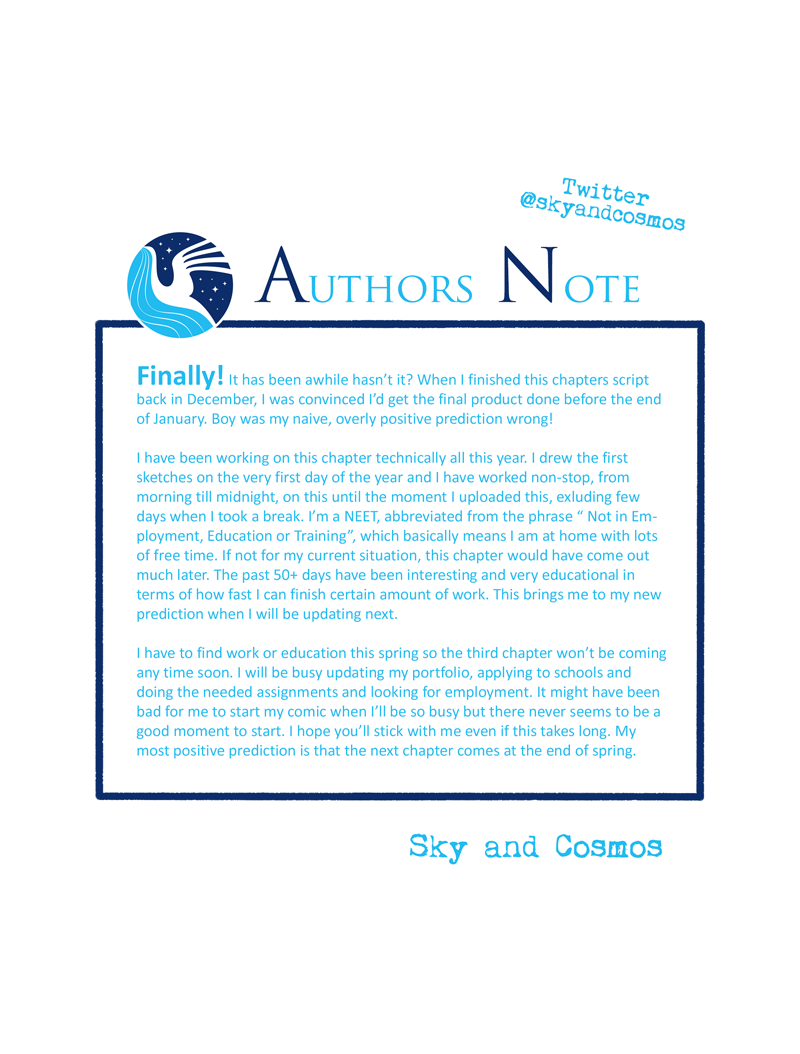 Anyways, hello! I have overcome one of the most challenging period of my life. Working on this was both fun and painful. I have learned a lot. One of these things is to never draw so many god damn backgrounds! They are the bane of my existance! Trust me, next chapter has less of them! Unless my perfectionist side takes over and forces me to draw them... we'll see.