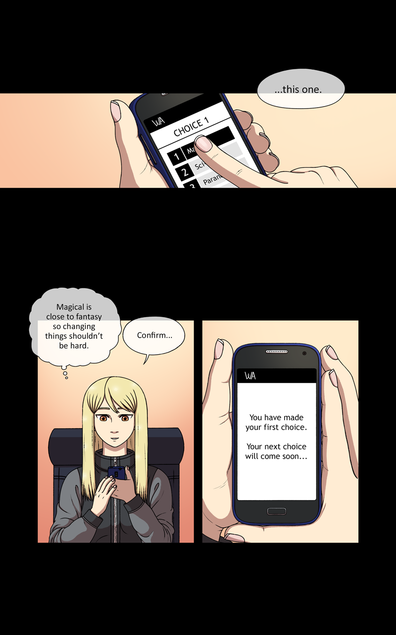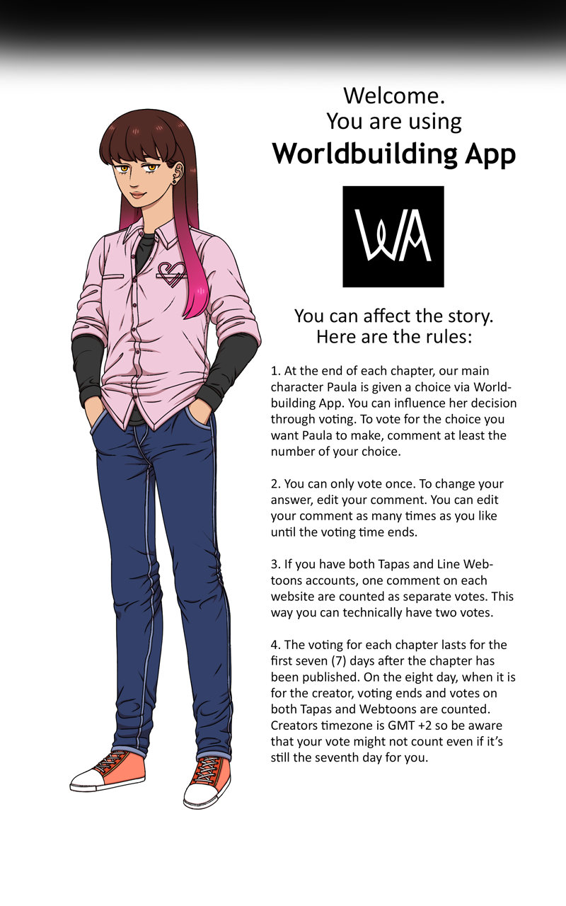 This is an interactive webtoon! You have the chance to change the cource of this story and influence our main characters decisions. There is limited time to vote after each chapter so be vigilant!