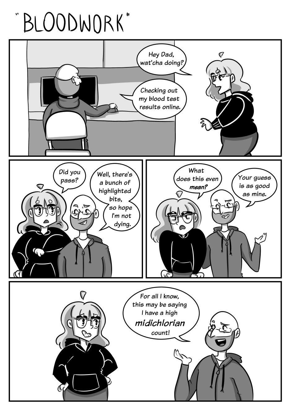 This is one of those strips that I'm not sure anyone else will get, but I had to do it *shrug* Also, I realized that so far 100% of the comics with my dad include Star Wars related themes.
