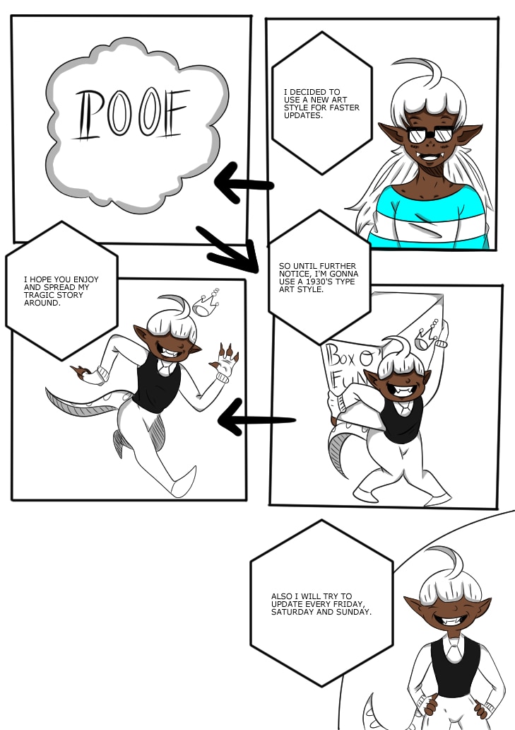 I also will consider doing small things like re-drawing my and, if you want, your old drawings. They will be put in the comic as a guest character. I will put up my Instagram username later so you can tag me in them.
