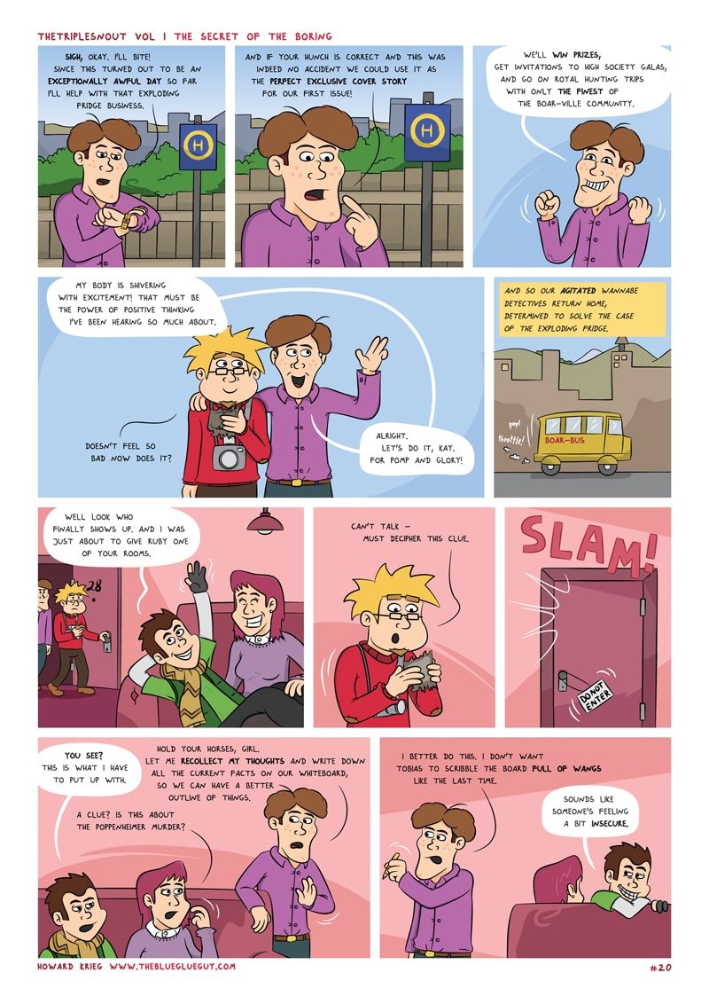 ‘The Secret of the Boring’ is the feature length and fully colored comic book debut by KC Howard.