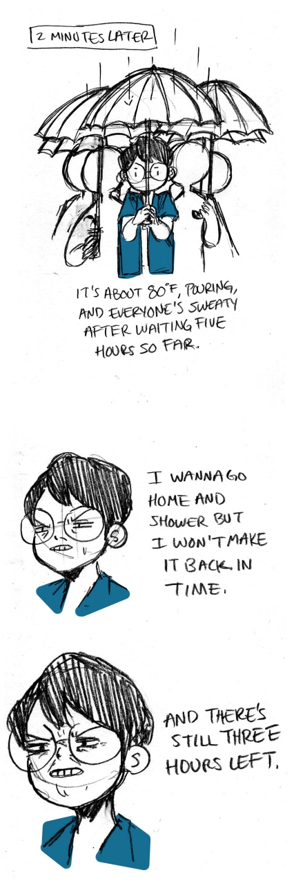 It was all just gross. Luckily, the venue had AC and was able to dry and cool down OTL If you have any questions, you can comment, send them to https://curiouscat.me/kobyy , OR ask me on twitter, just tag @thelivestotaku so I can see!! :)