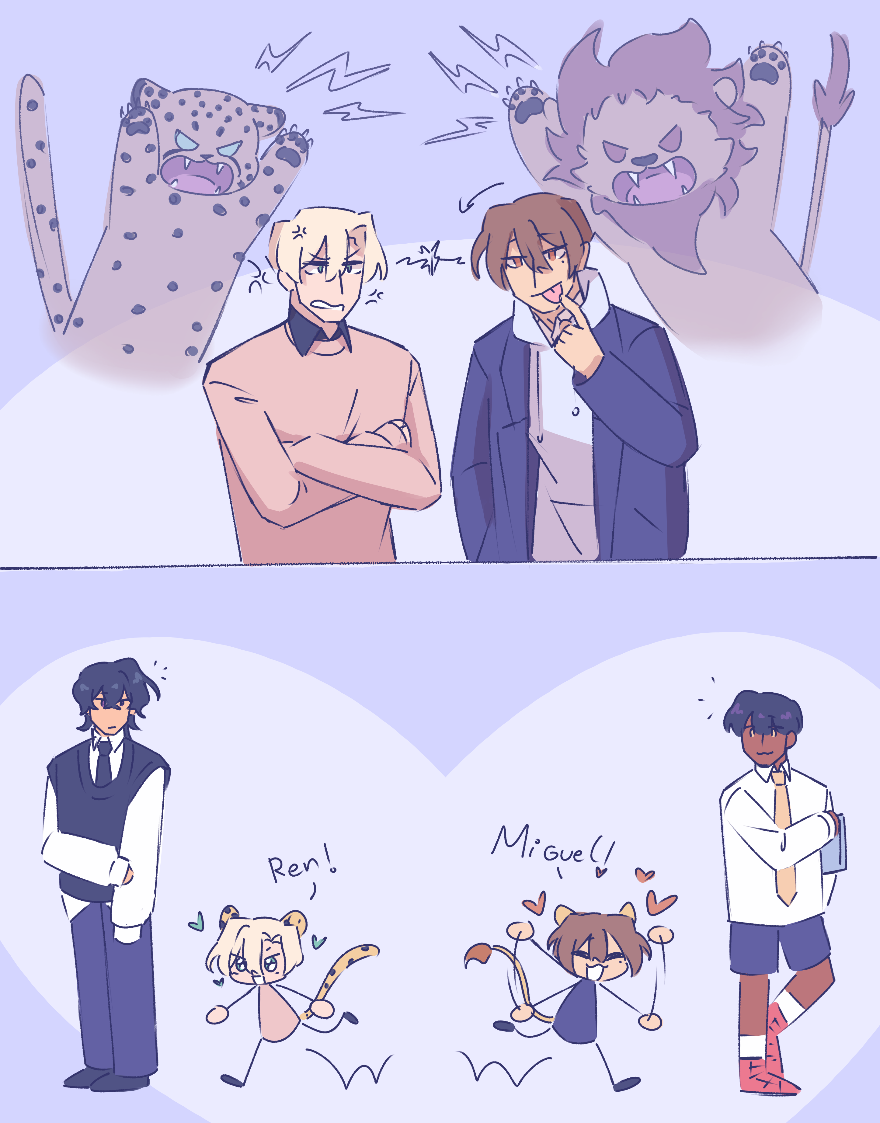 Another 'guess the anime' kind of art hehe~ But this one should be easy, since Ren looks almost identical to one of the characters... And believe me, I only remembered I watched this anime a few weeks ago, but somehow Cedric and Ren are very similar to this duo (っ °Д °;)っ