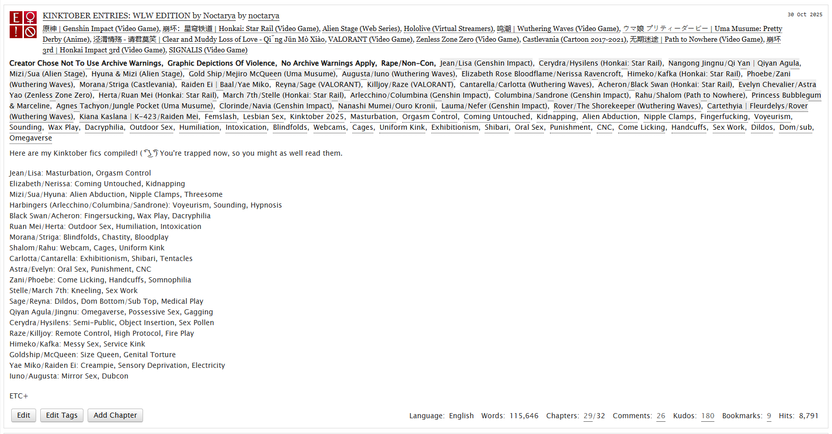 Hey everyone! 👋 If you've been wondering where I've been, I've actually been busy using Kinktober as extreme therapy to fix the massive writer's block I had on my novels. 😂 It definitely did the trick!