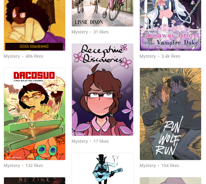 (Also quick note: Apparently DD is underneath the popular section for mystery comics??? I have no idea how, or why. Maybe the mystery genre is not used that much on tapas but hey, i'm not complaining lmao)