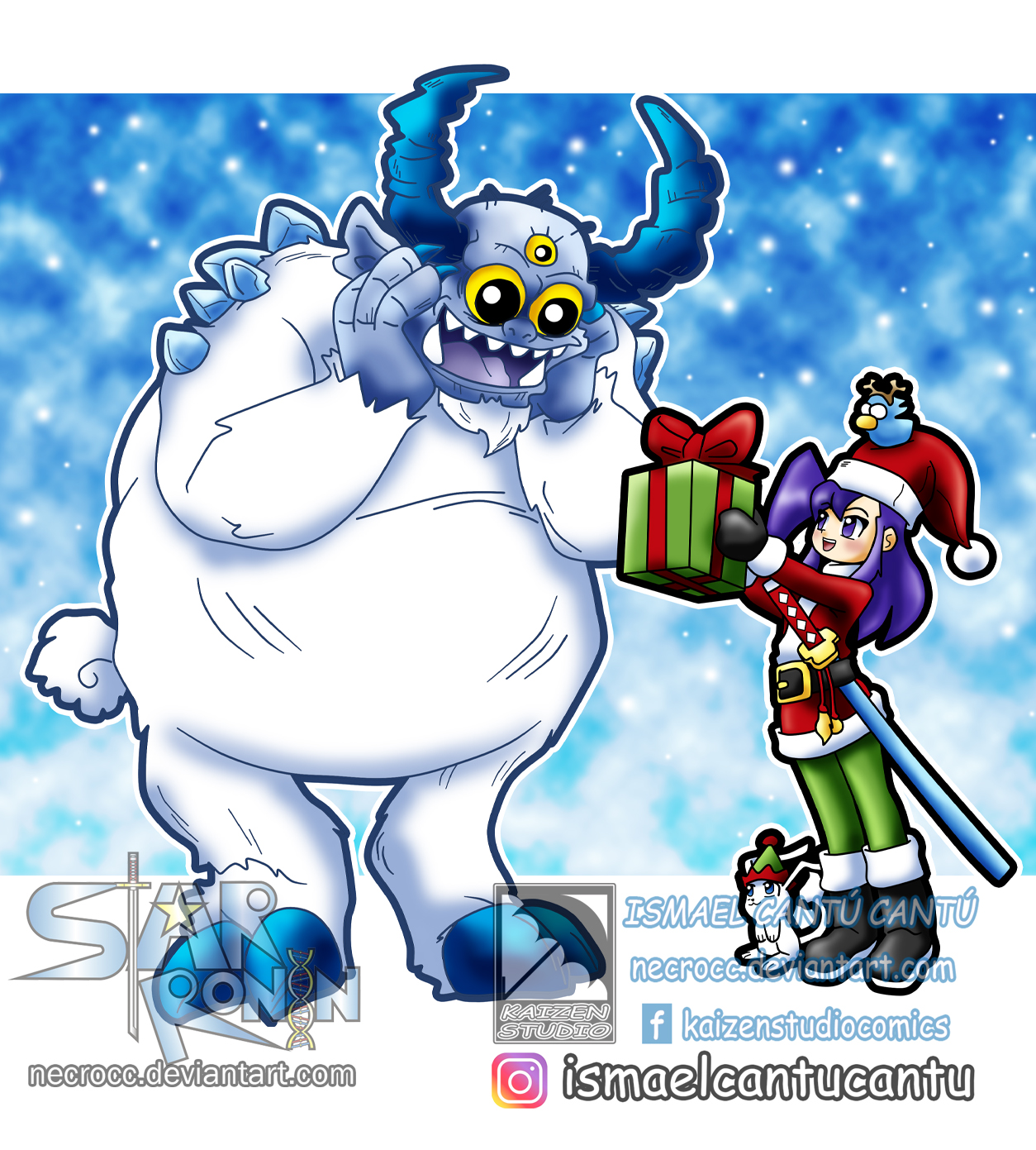 Dibujo del 2025, El dibujo de Navidad de este año como es tradición, dibuje a Ayame de Santa Claus, con Maru de reno y Pelos de duende dándole un regalo de Navidad a un no canónico abominable hombre de las nieves XD