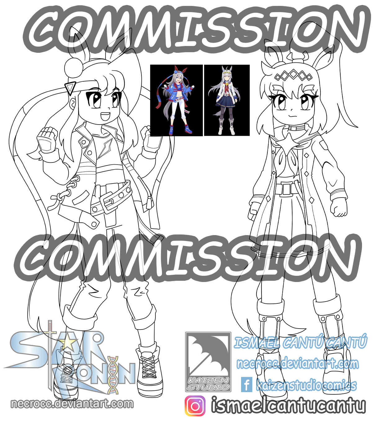 Me pidió dibujar a mis personajes de Star Ronin cosplay de personajes de la serie Uma musume. Son Ayame y Koji versión chica... no, no es canon ni multiverso, la dibuje por el 2020 con una versión de Ayame chico en un inktober propio XD