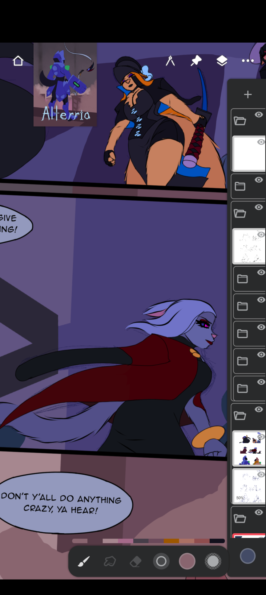 Alterria CH14 PG3 and 4 are done. I'm working on Pages 5, 6, and 7 this time around. To try and make up for lost time. Reminder, CH14 Pages 1 and 2 go up on January 2nd.