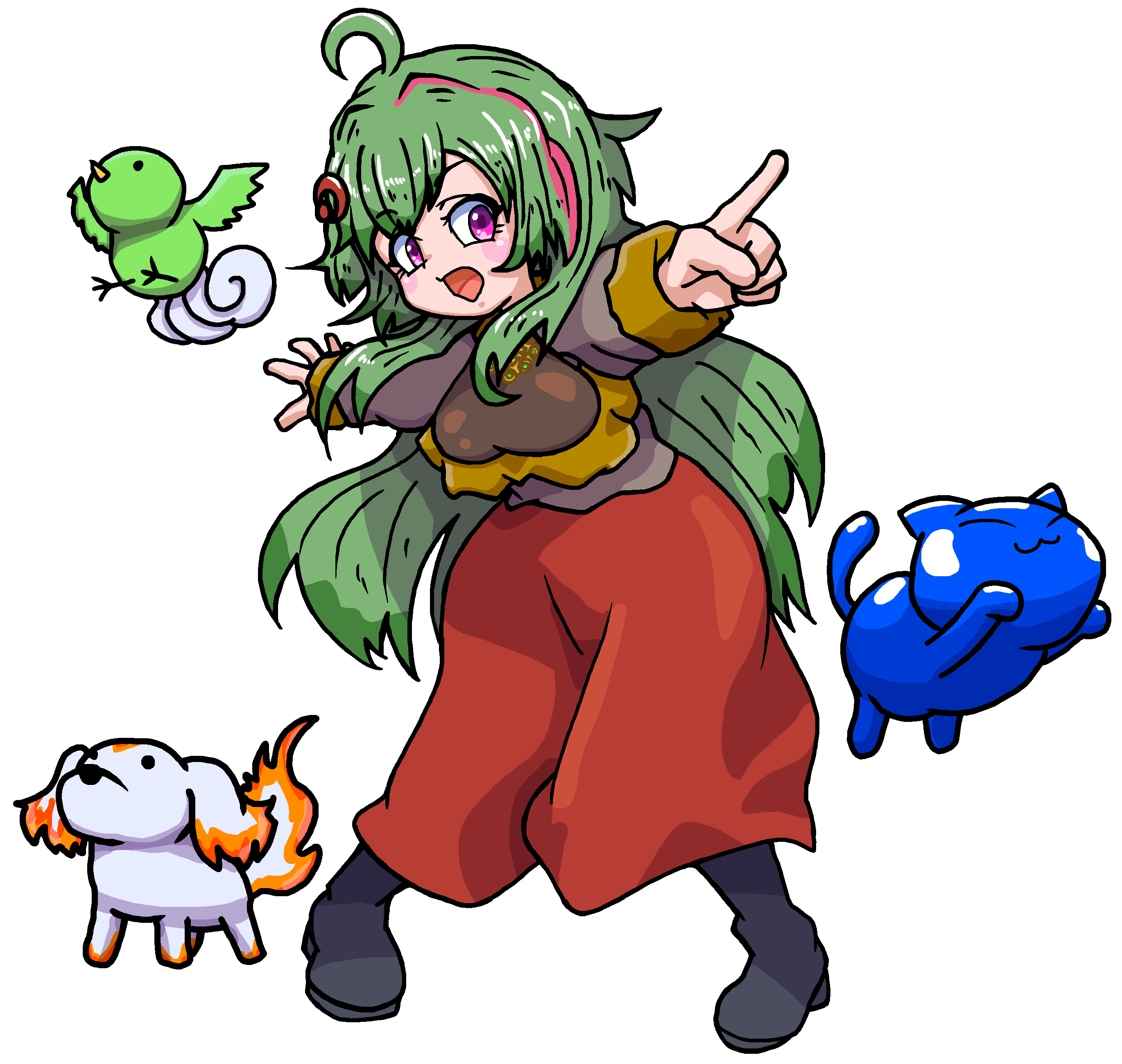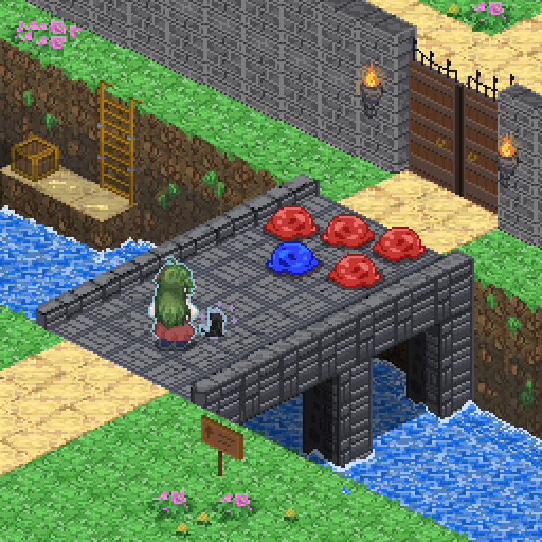 "O-Oh! Mr. Ethercat, go and bite them. Ehehehe... Just not too a-aggressively, okay? I mean... uuu... Please defeat them in combat by... biting them. Ahaaaa... Th-They are JUST Jellies, is that right, Mr. Ethercat..?"