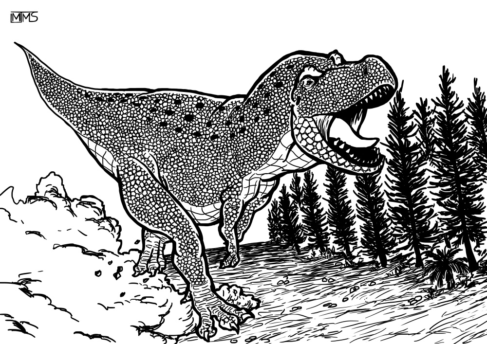 Desenhei um tiranossauro em fúria.