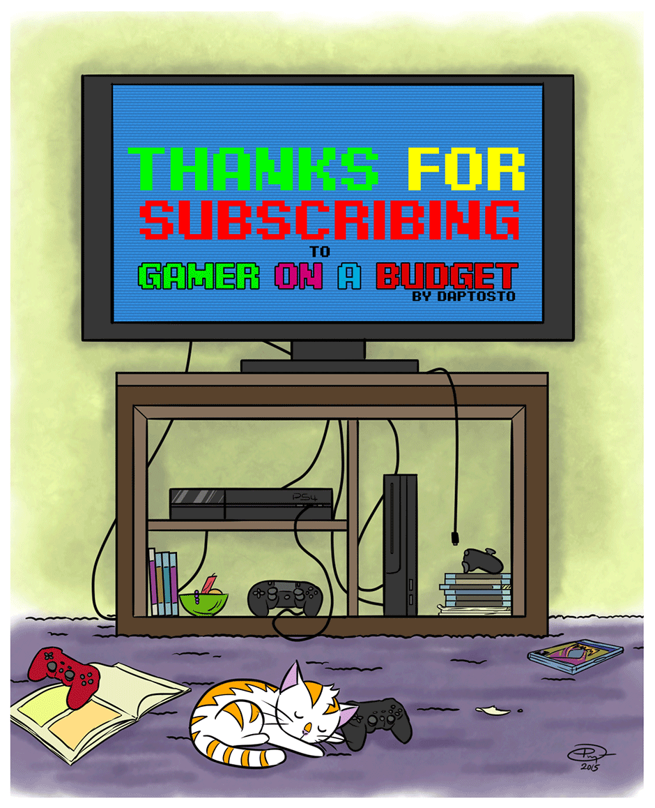 Thank you so much for subscribing to Gamer on a Budget. For the latest artwork, sketches and news, follow us on Instagram @daptosto_comics