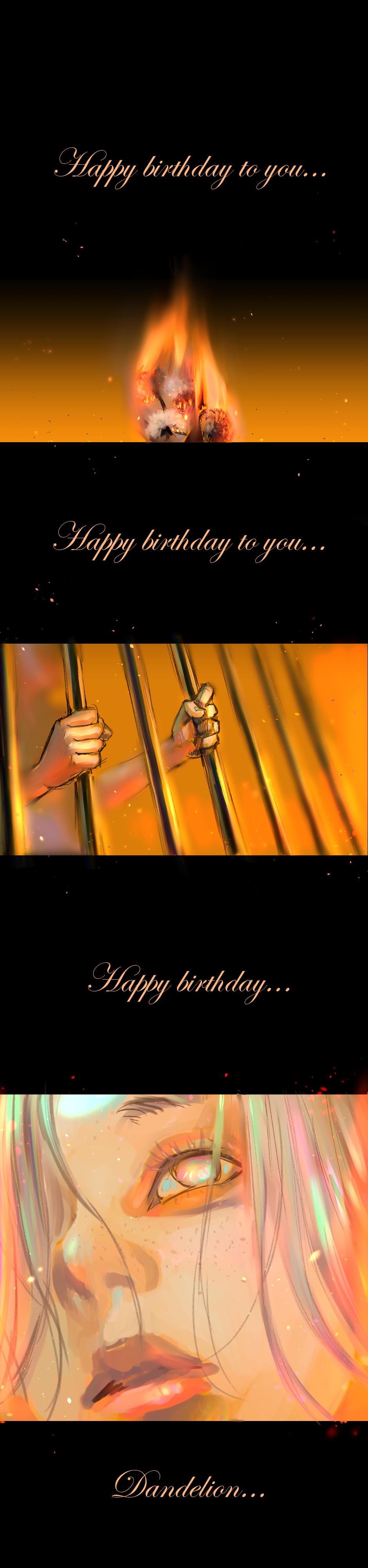 One day, a fire breaks out at one of those parties. She got rid of everything that got burnt and replaced it. Dandelion included.