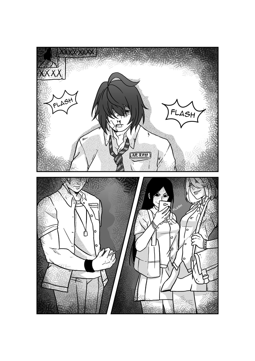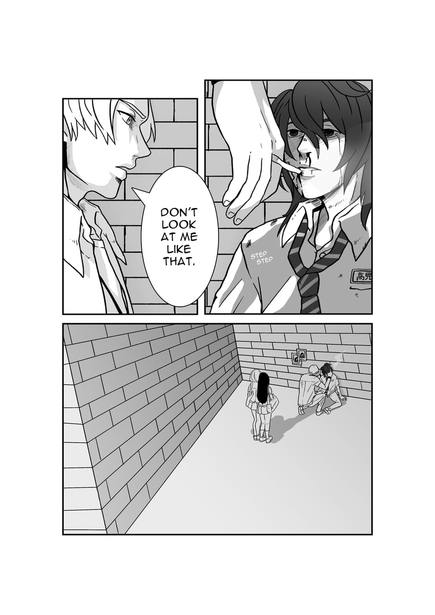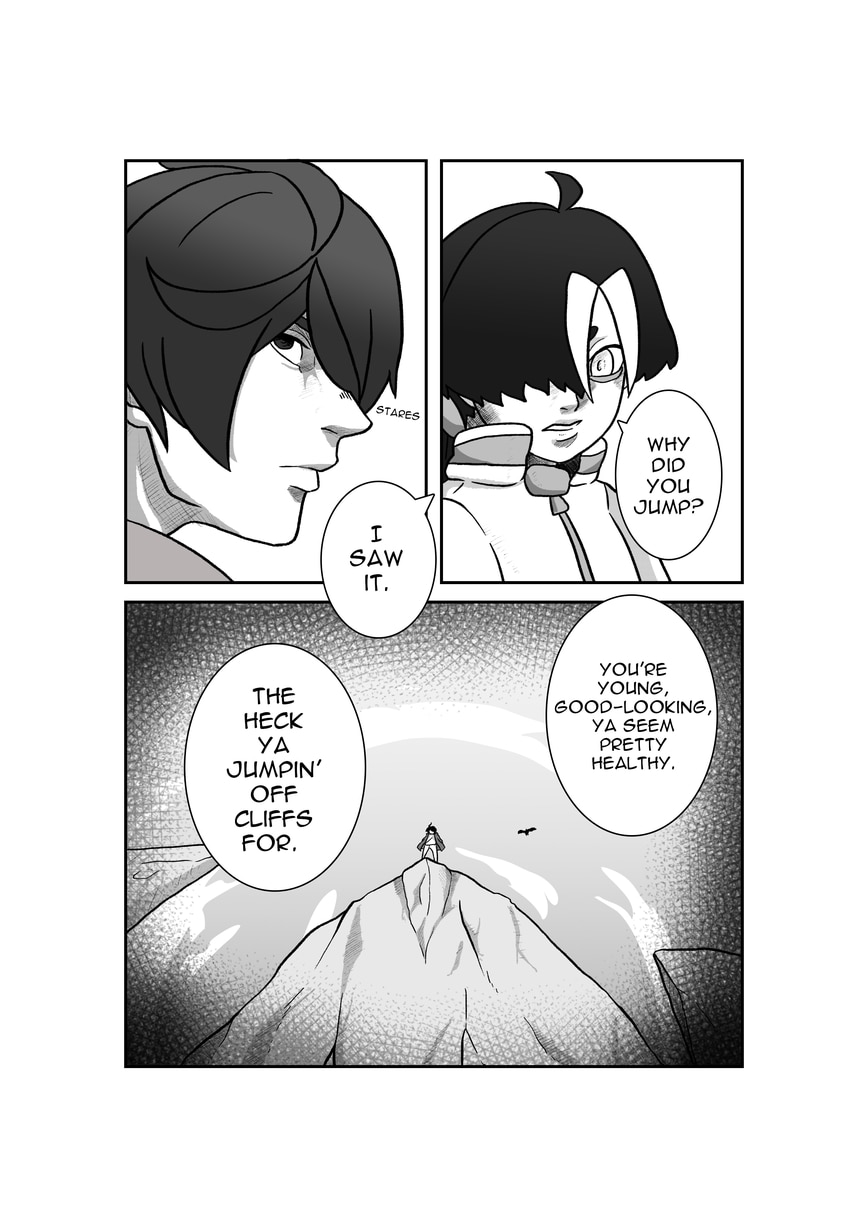Read Right to Left. He jumped, and met the other boy.