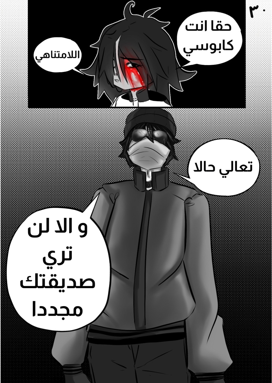 (نعم اريد ان اقول ان هذه القصه قديمه و كانت لمسابقة مانجا العربيه لكني لم أتأهل لكن طول وقت انتظاري كنت اتدرب على الرسم اكثر و اكثر فا ستلاحظوا ان رسمي تغير اذا صنعت اعمال اخرى جديده قريبا) اتمنى ان تحظوا بقرأة ممتعه