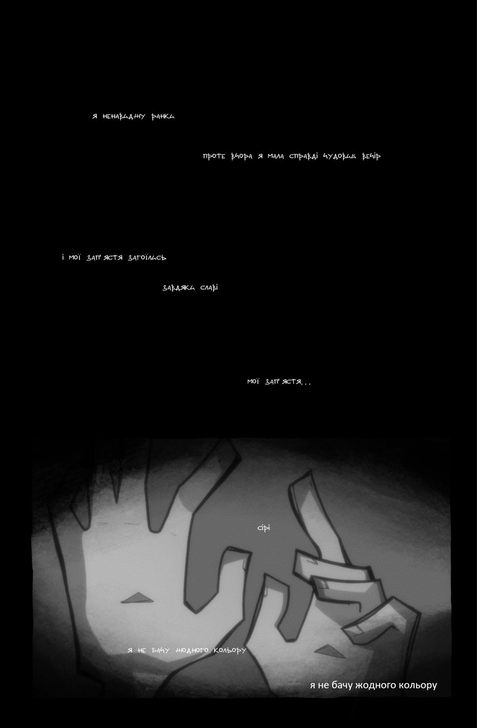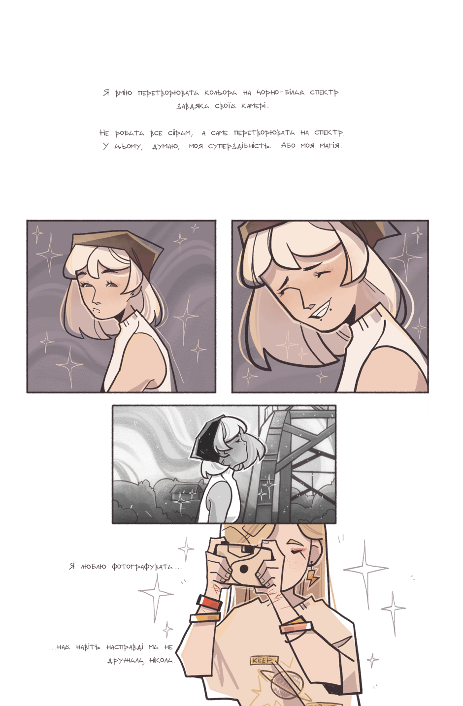 Літо 202X року, Дніпро. Діана — аматорка фотографії на порозі повноліття, рік тому обірвала свої останні стосунки з таким болем, що закрилась глибоко всередині себе. Так вона й живе своє ordinary life в устриці власного внутрішнього світу, поки життя її не зводить з вуличною музиканткою-травницею, що, перш ніж закохати в себе, позбавляє Діану можливості бачити кольори й відкриває їй світ магії, в яку можна повірити тільки на слово.