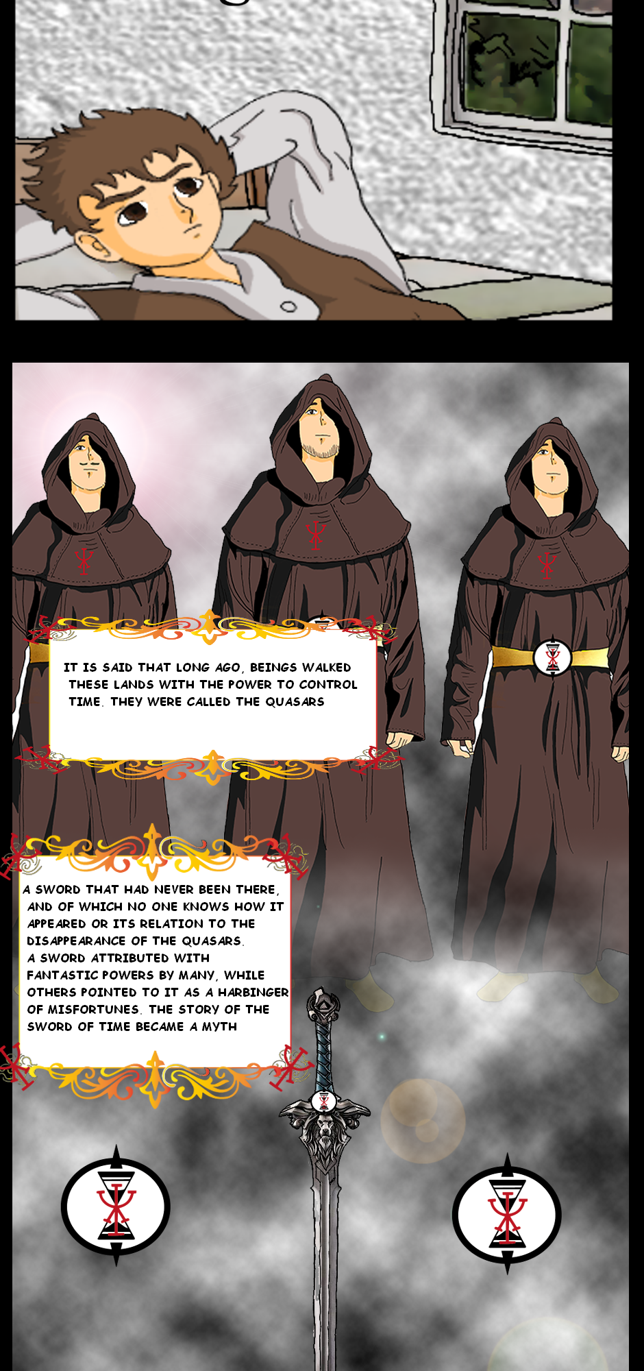In a world where history and magic intertwine, The Sword of Time follows the journey of Stagiro, a young man whose life changes when he discovers that he is the key to an ancient prophecy. The story begins when his father hands him a scroll with a torn map and warns him that it must never fall into the wrong hands. Just before they can escape together, soldiers storm their home, forcing Stagiro to flee while his father sacrifices himself in a desperate battle.