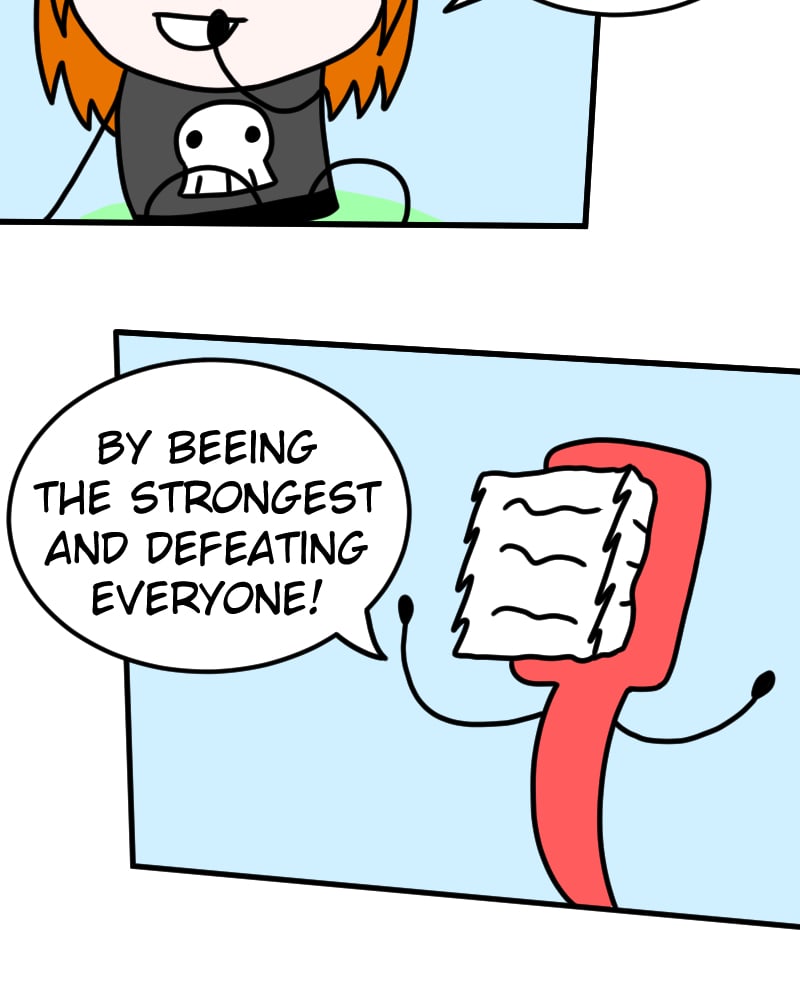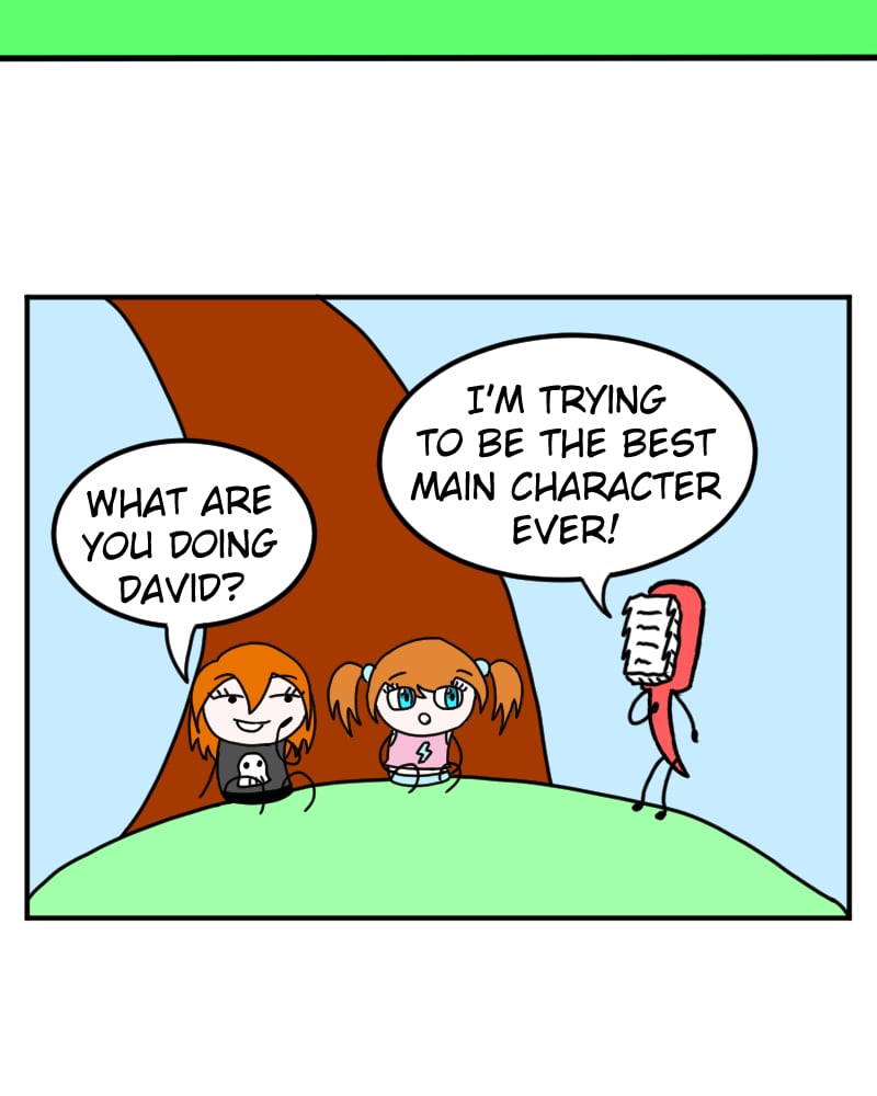 David dreams of freeing the residents of the afterlife, from the control of the evil gods who rule it. As the main character, he's certain his plot armor will protect him. The only problem is... David is a toothbrush and has no face and is afraid that because of that the readers won't find him relatable.
