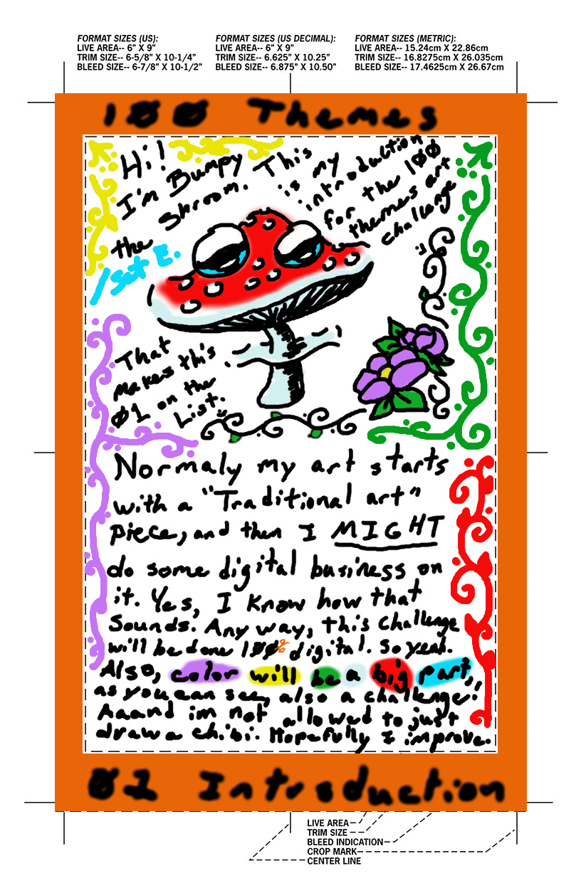100 art themes, 100% digital, color required, no chibi cop outs (though I will let them be extras). My 4 or 5 weaknesses addressed in 1 glorious challenge. Let's see how much I improve, yeah? (More weaknesses are a strong possibility. ;3 )