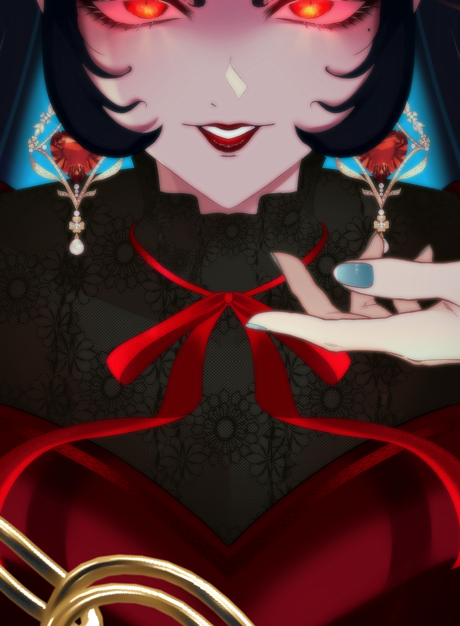 Ophelia Morrigan Poinsettia: hair as black as obsidian, eyes like rubies and skin as fair as onyx, the perfect princess blessed by the Goddess of fire Flamma, a threat to ᏖᏂᏋ ᏒᎦᎩᏗᎦ ᎦᏁᎷᎥᎶᎩ.