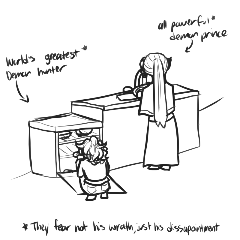 Updated version of a boy and a demon walk into a room, as the story it’s attached to has changed a lot <3 a little something cute for the times!