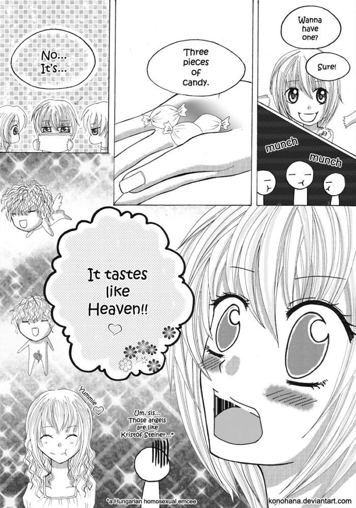 Angela is crazy about sweets. One day, she got a package with three pieces of candy. She got it for a month every morning. One day she met with the sender Greg, who offered her a job in his parents confectionery. She accepted and start to work with Greg. She fells in love with him but she's not sure in her feelings...