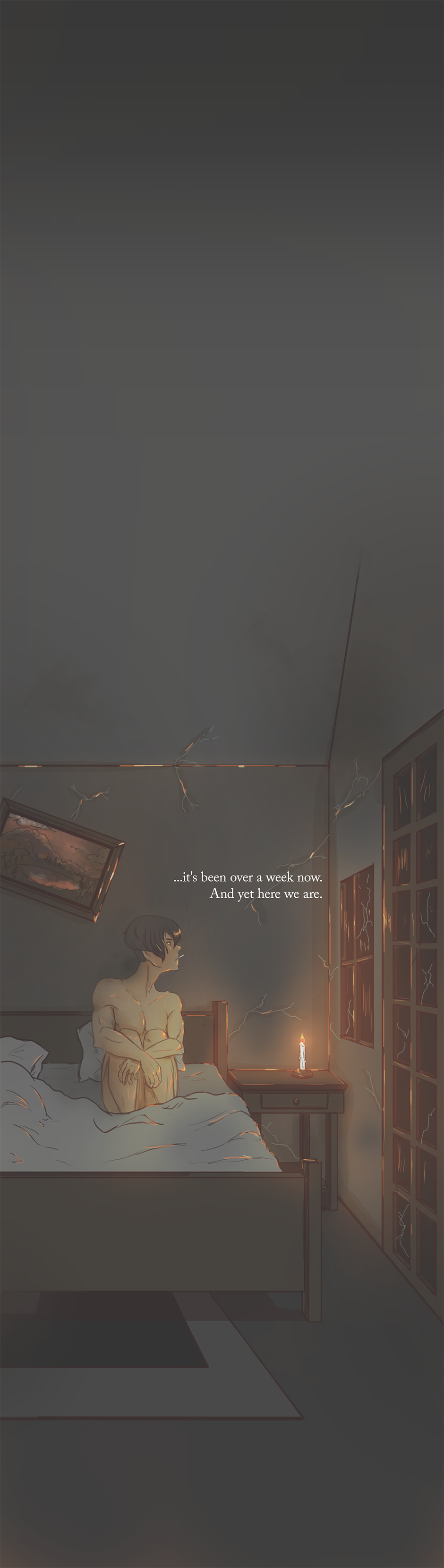 Thank you all for reading! I have enjoyed making this work so far! I struggled a lot, but I can say that I am proud. Please feel free to leave a comment, a critique or a heart. Also, I hope everyone is not too uncomfortable with the NSFW tag. I do not intend this to be an explicitly sexual work, but there is nudity and sexual themes involved, even if lightly so. So I am tagging it as NSFW to be safe. I hope that's okay with you all! :3