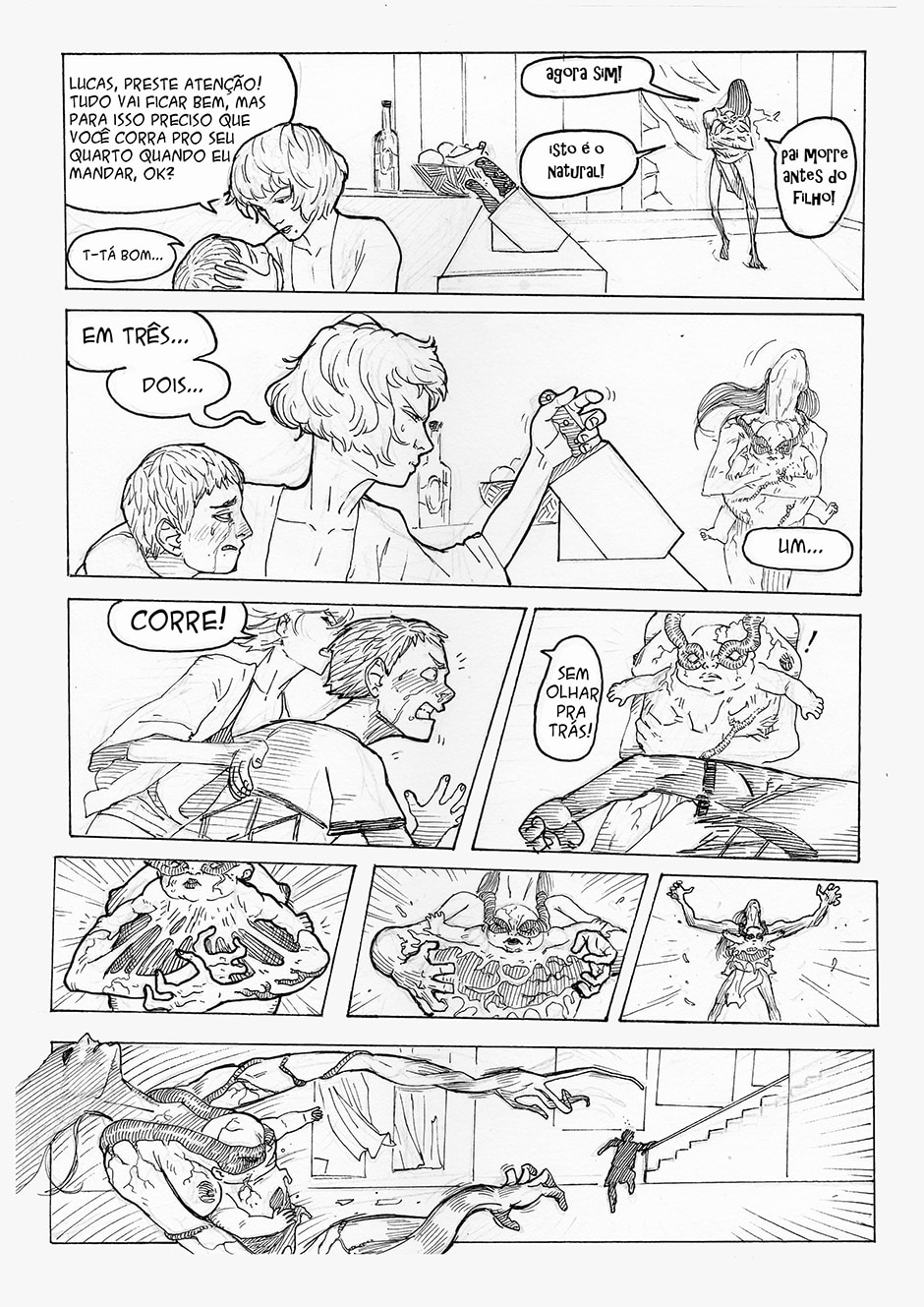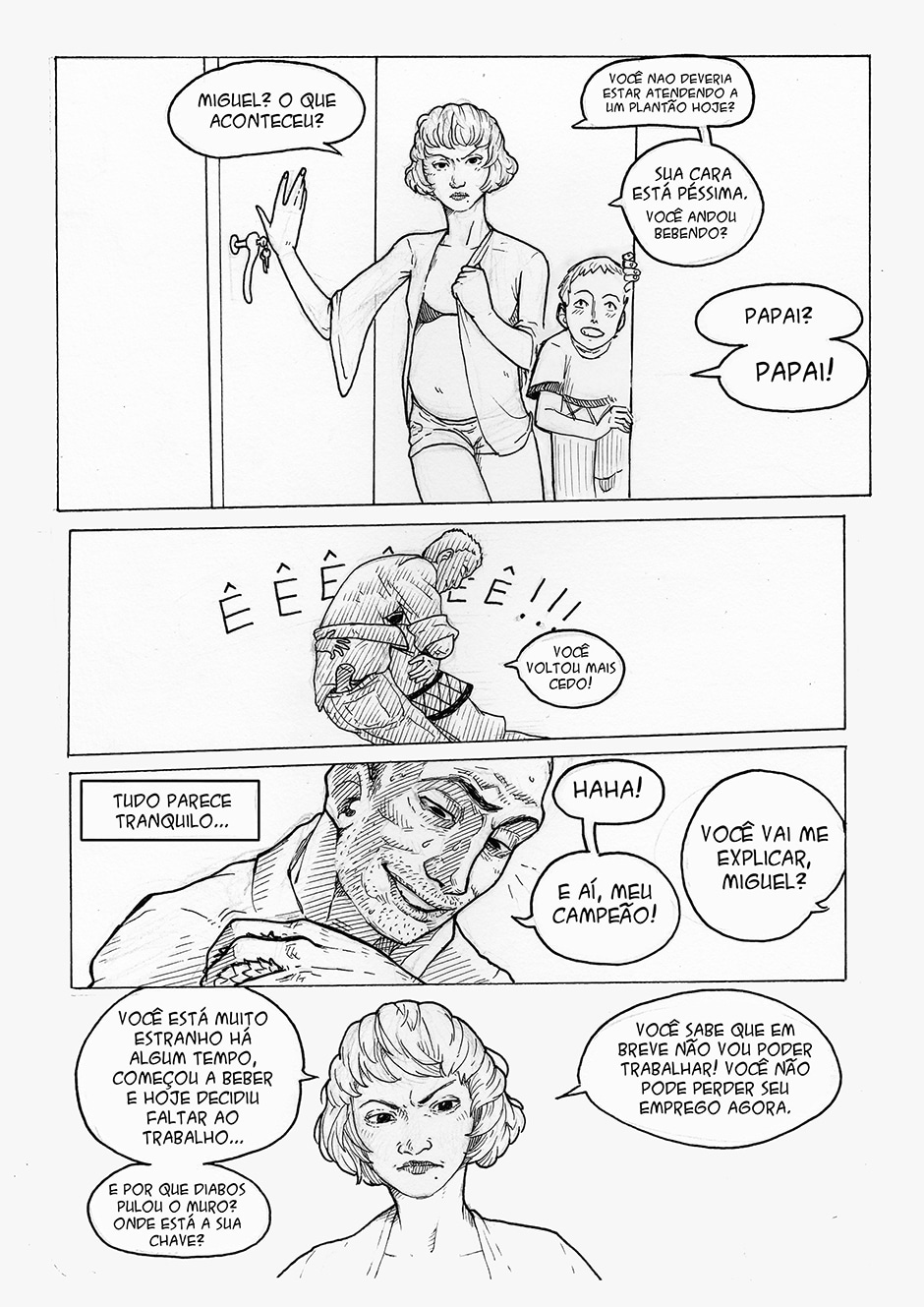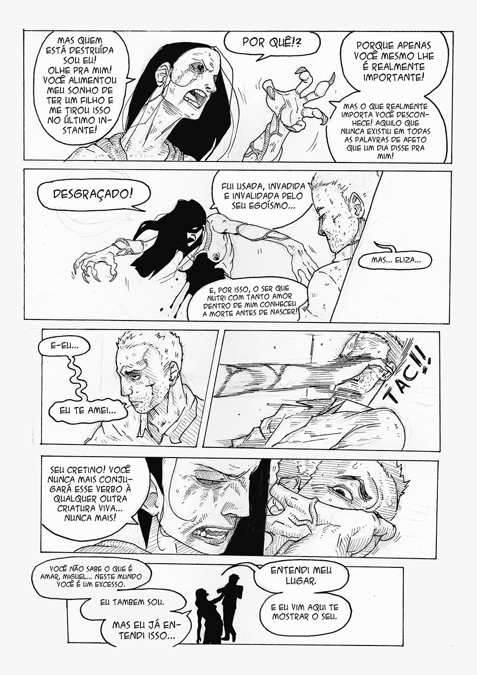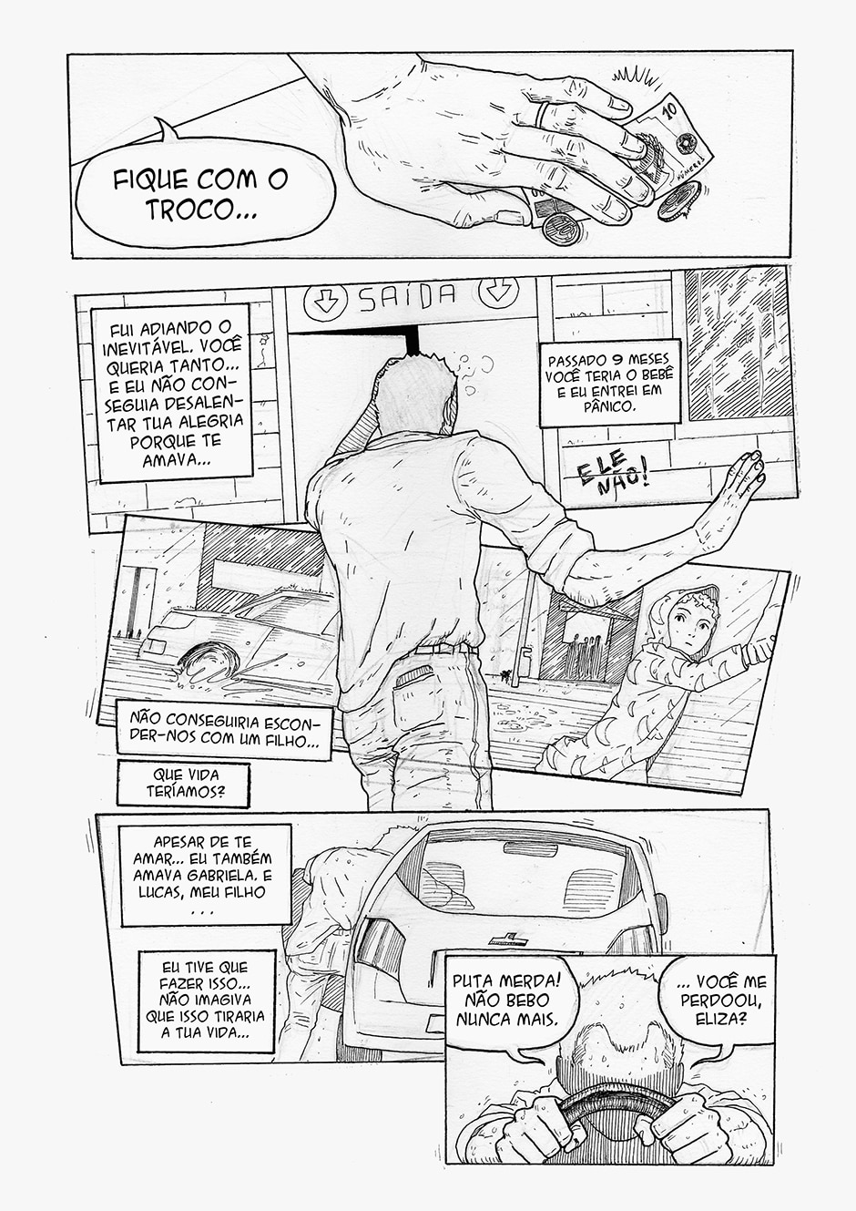 Boa! A frase final me pegou, haha Gostei do traço e da energia das formas. Enquadramento organizado. Interessante o conceito da história, bastante nova. Continue com o bom trabalho ^^