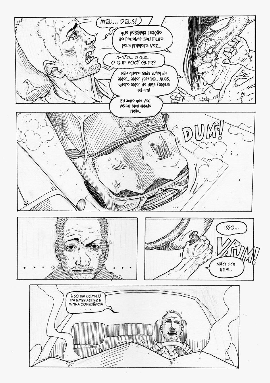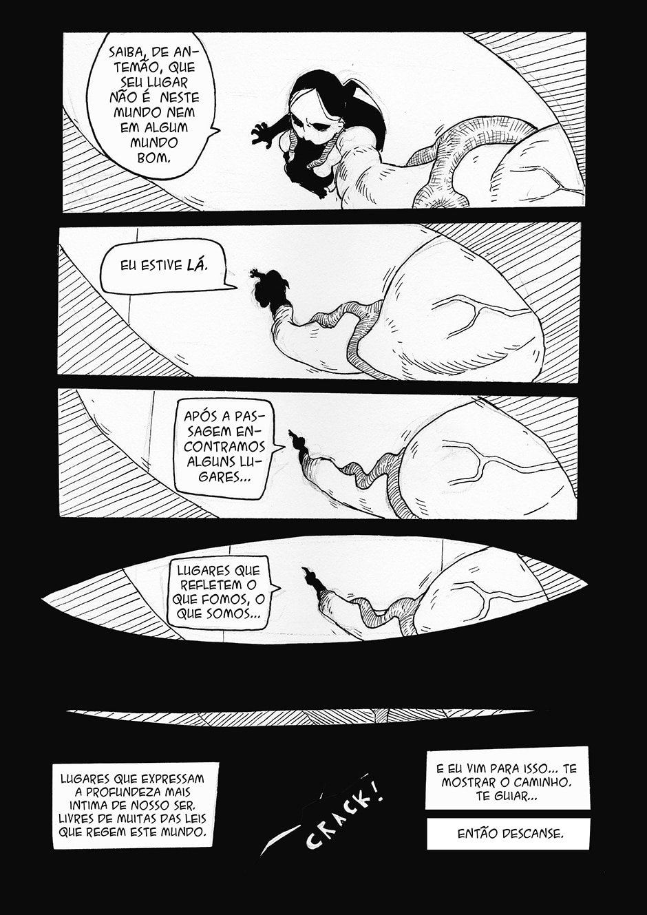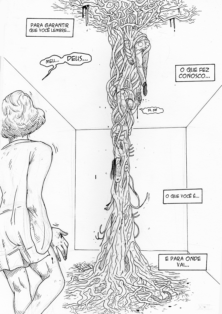 Boa! A frase final me pegou, haha Gostei do traço e da energia das formas. Enquadramento organizado. Interessante o conceito da história, bastante nova. Continue com o bom trabalho ^^